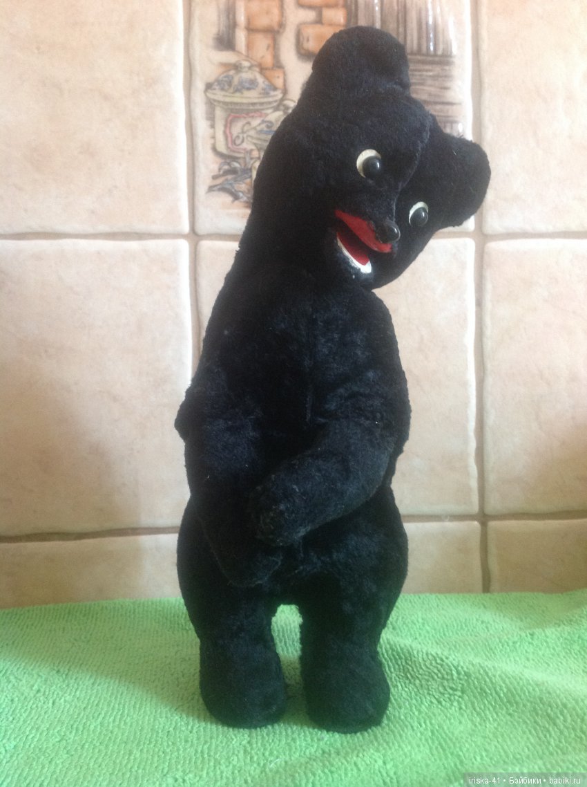 Собрат Вашего михася. Молочную бутылочку злые дети с мясом из лап выдрали. Так же, как и механизм разломали. Не рычит, молоко не пьёт, но лапы раскрошенные подклеили, и живёт мой детский друг в книжном шкафу за стеклом.заслужил почетный отдых)