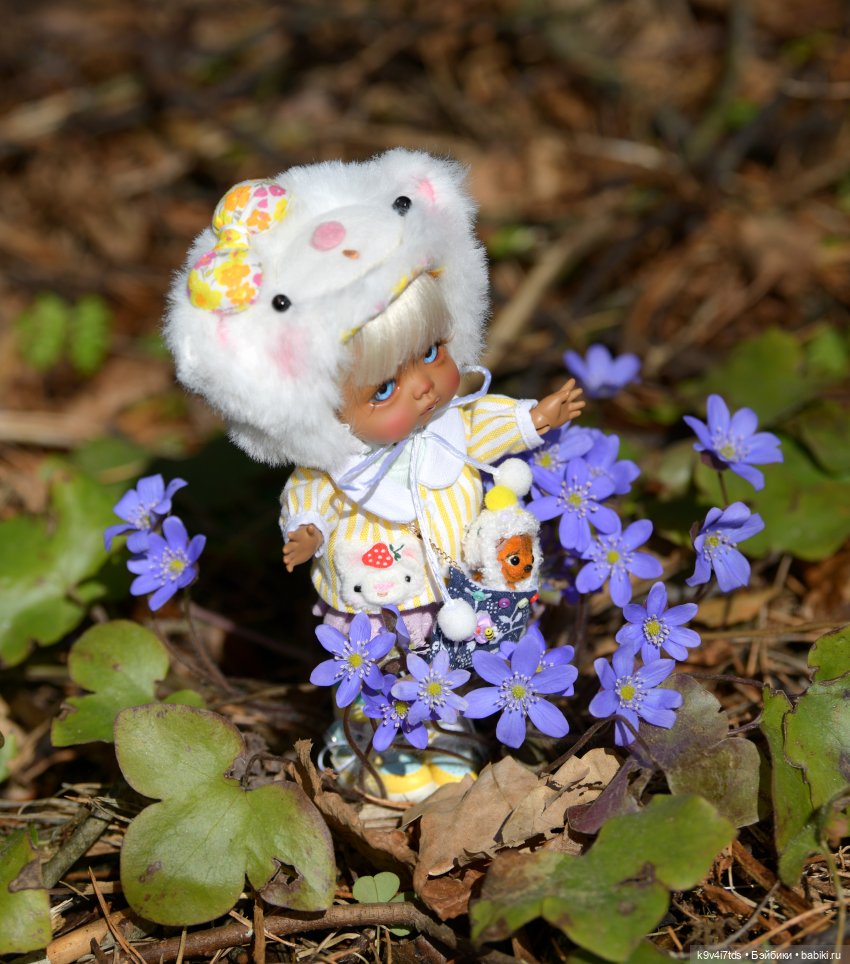 Эта прогулка в лес, где растут «синие подснежники» (правильное название: Печёночница благородная) была 13 апреля! Накануне был непрошенный гость — снег! Думала, что уже и не увижу «синие подснежники»! Но цветочки этого дивного растения только на вид хрупкие, на самом деле — стойкие, как оловянный солдатик!С собой взяла Агушу, Брианну, мини Мию, котика Феликса и Лесных Чудиков!