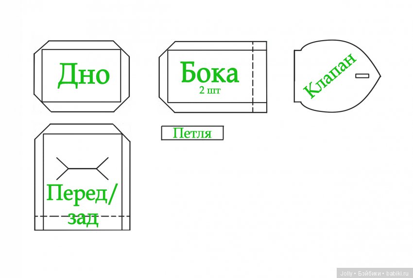 — боковые стенки, клапан и дно делать из плохо гнущегося материала (кожа, кожзам, фетр);