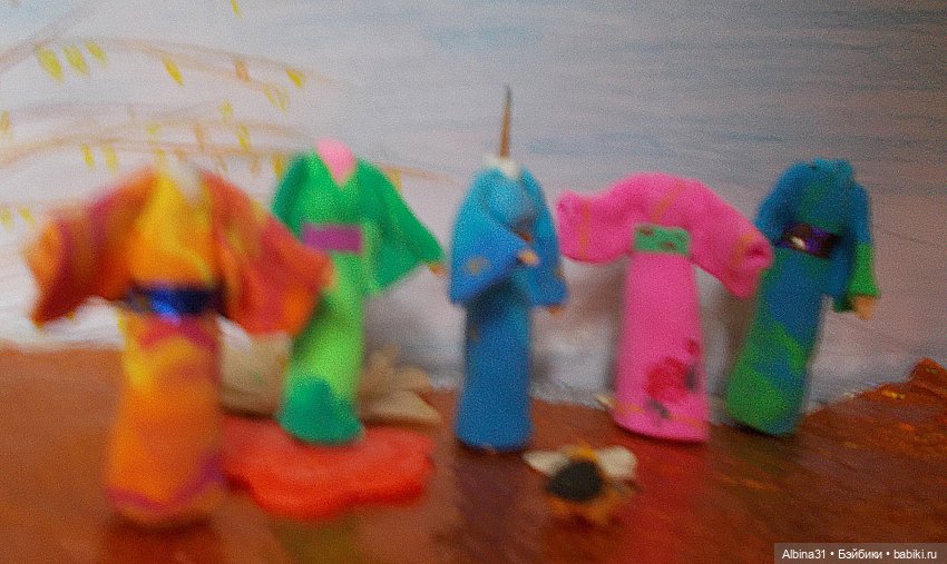 Скатала из него шарики налепила куколкам на лысинки, придала форму причёсочкам при помощи стека, дала подсохнуть и вуаля: