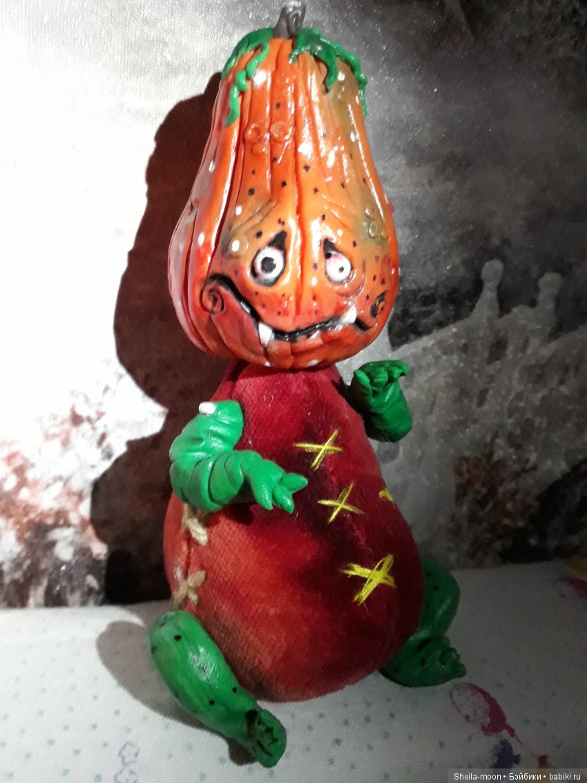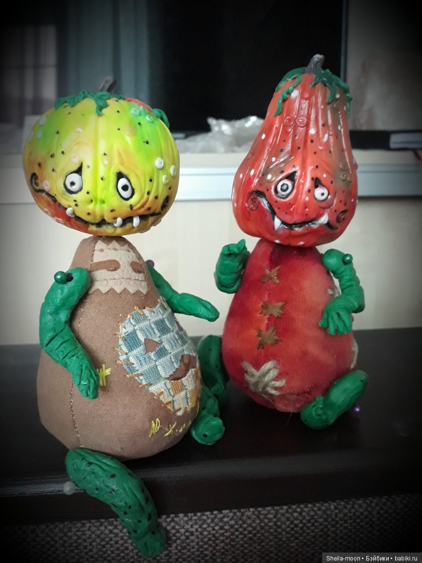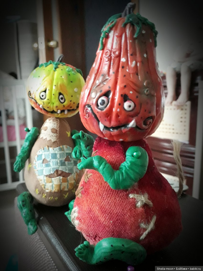 Всем доброй ночи!.. Сегодня я пришла к вам с веселыми тыковками к Хеллоуину. Делала их по МК Катюши Морозовой. Очень рада, что увидела ее МК, было интересно посмотреть как работает другой мастер, и слепить таких милых, веселых, чудоковатых тыквоголовых страшилок ребятишек Внесла свои задумки при создании малышей.