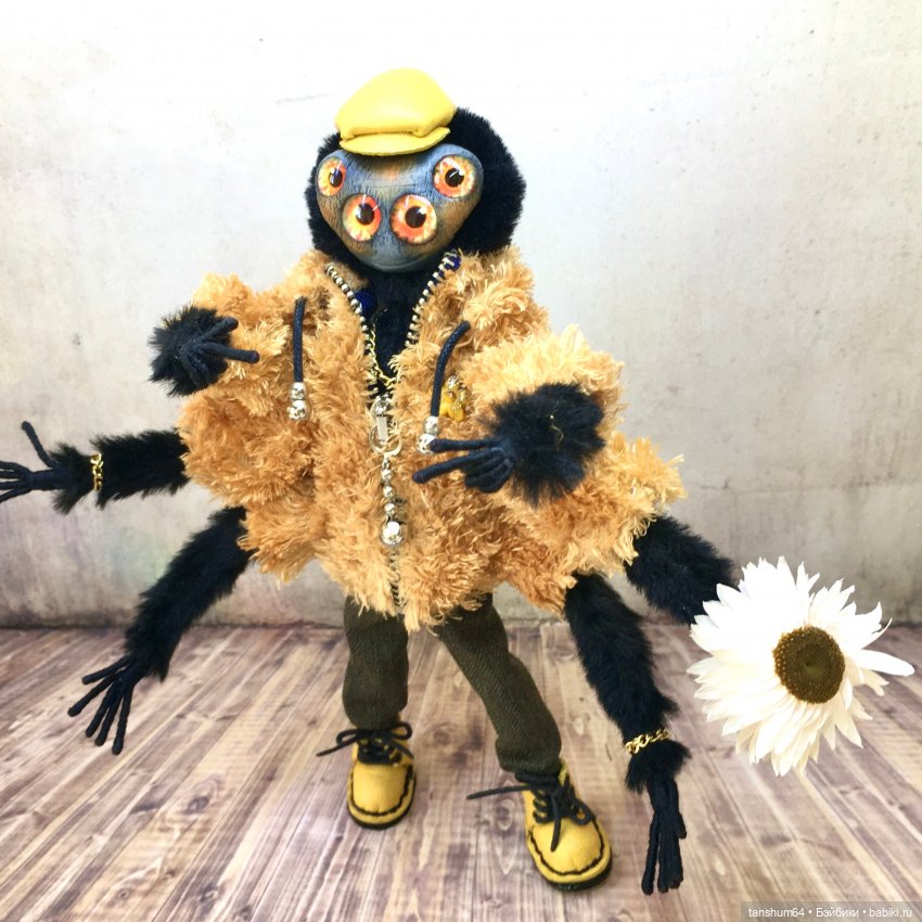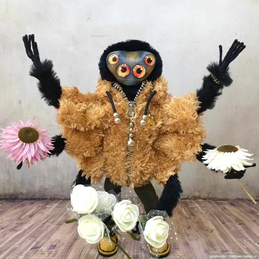 Доброго вечера всем! «Весна идёт, весне дорогу!» И в «Паукодоме» тоже происходят весенние перевёртыши… Например, буквально вчера на свет появился Самуэль, а коротко-Сэм. Это не просто паук, а паук-супермодель, да ещё умеющий стоять на двух лапах! Такого красавца пришлось приодеть помоднее. Уж мастера расстарались, чтобы у Самуэля были все аксессуары для модных показов! Пришло время познакомить новосёла с вами, дорогие жители Бейбиков!