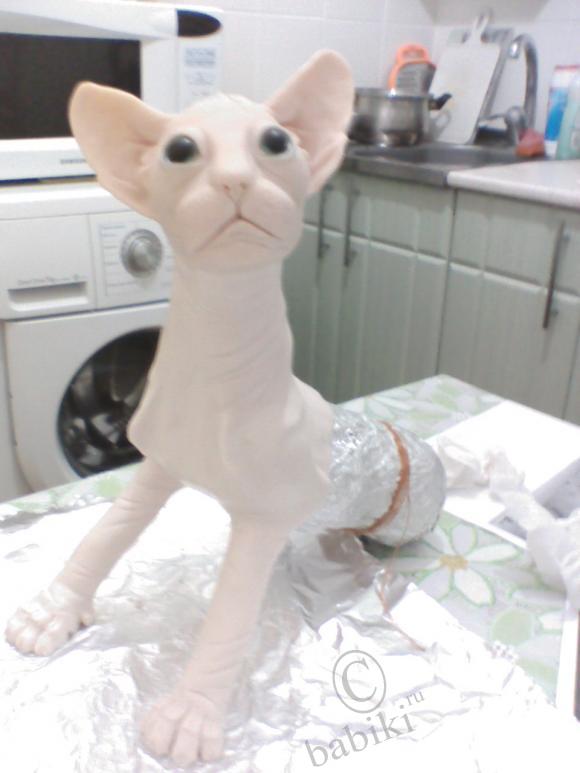 Моя работа из фимо! Горячая кошка - канадский сфинкс
