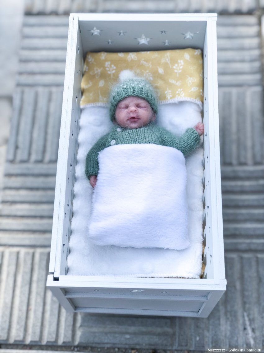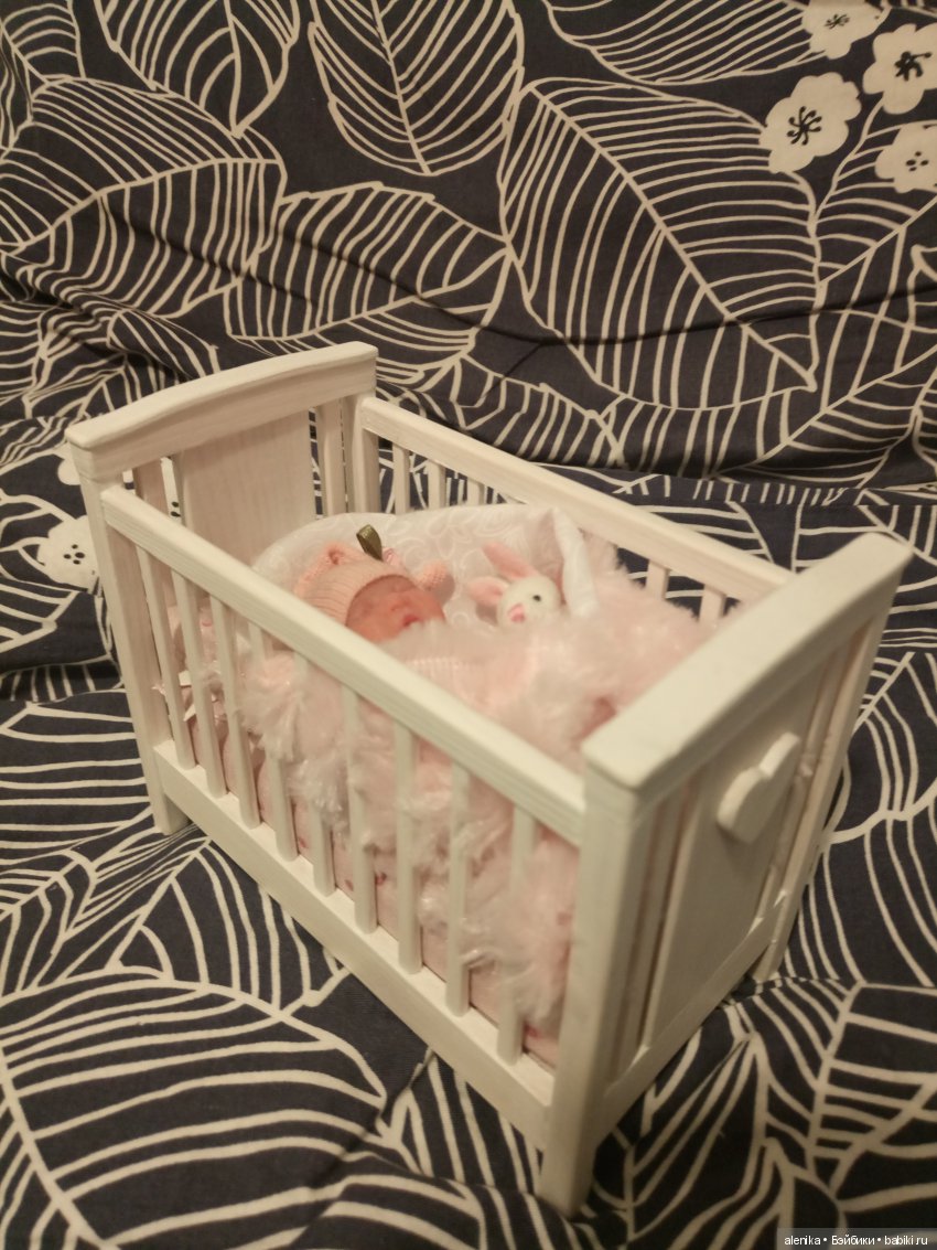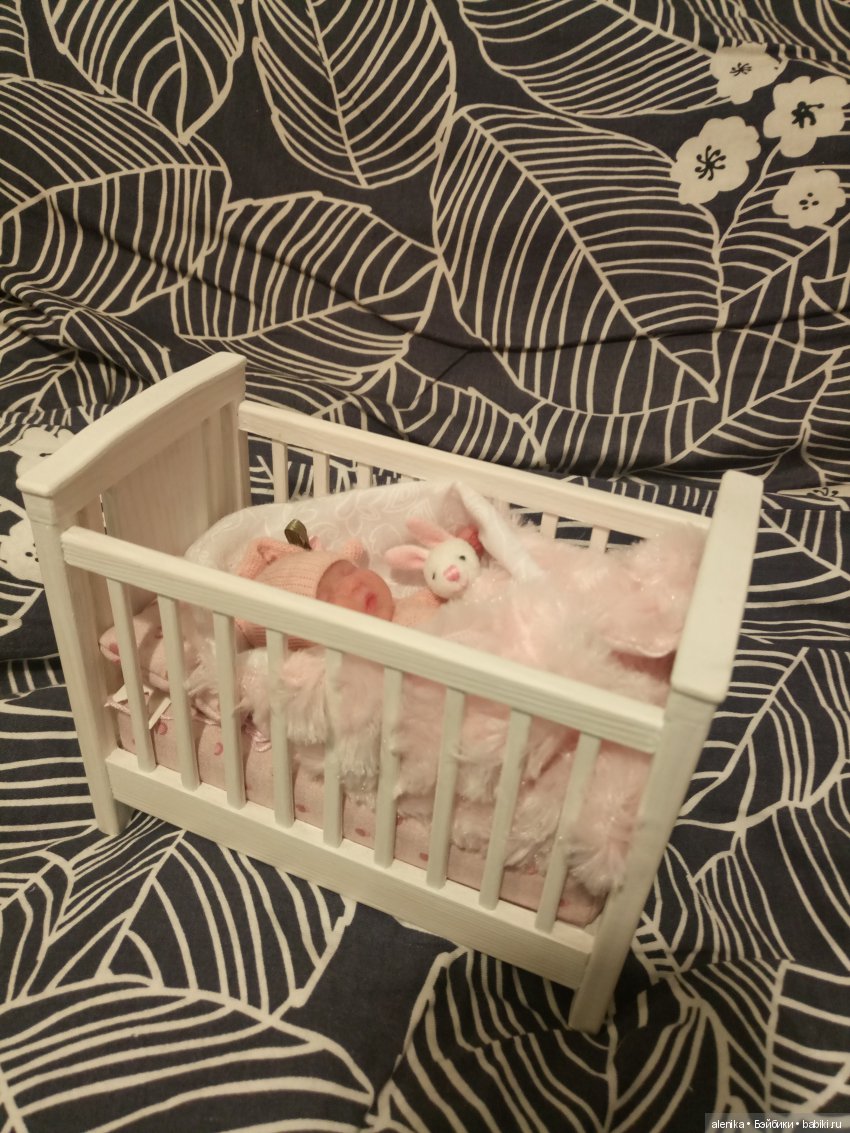 Я для своей силиконовой малышки тоже такую кроватку купила и думала, как бы украсить. А у вас так красиво вышло. Надо взять на заметку.