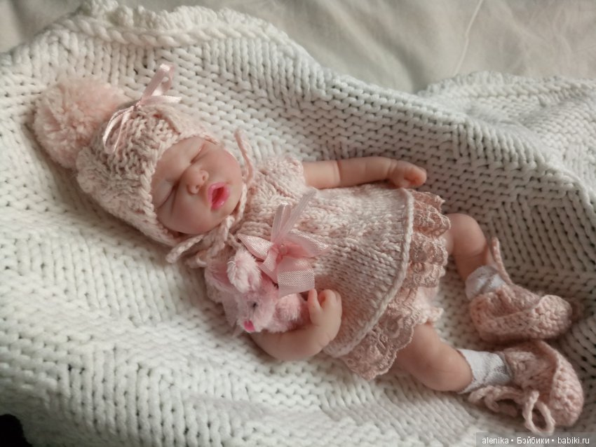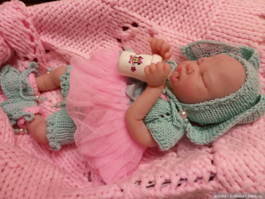Сегодня я хочу вас познакомить с силиконовой куклой от Татьяны Берновой. Рост крошки 12см. Волосики прошиты ламой.Крошка приехала с сосочкой, бутылочкой, в памперсе, одеялке, с игрушкой и комплектом одежды от Татьяны. Дома ее ждала уютная кроватка, которую я сама смастерила и еще один красивый розовый комплект, который я тоже сама сшила для нее. Малышка очень милая и уютная. Знакомьтесь)))
