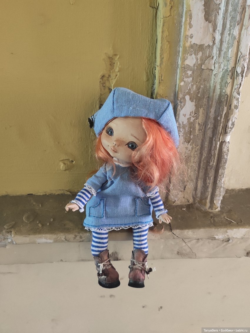 Мария, у куколки голова и конечности из запекаемой глины, а тело мягкое. Одежда обувь несъёмные, но я в неё так влюбленна, что совсем ничего не хочется менять) и у неё мой любимый рост 20см)