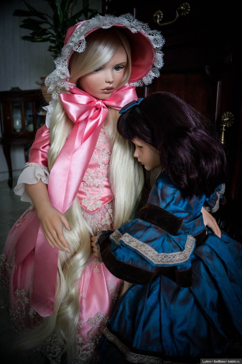 это она с Алисой, еще с париком потом я ей волосики переклеила теперь они очень густые и длинные, а Алису я уже перелепила полностью буду сажать на шарнирное тело, теперь больше на прототип похожа :) но все руки не доходят