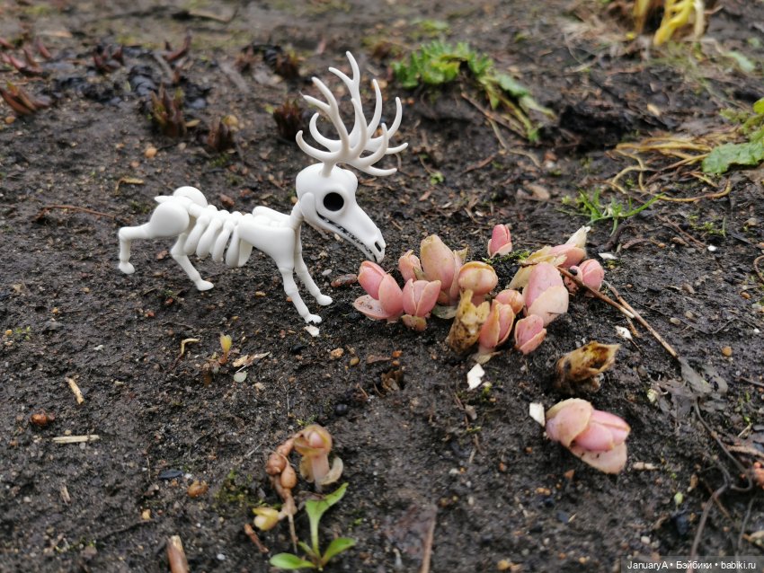 Я в гости с одним товарищем — только вернулись с прогулки. Весна — время обновления! Пробиваются ростки очитка. :-)