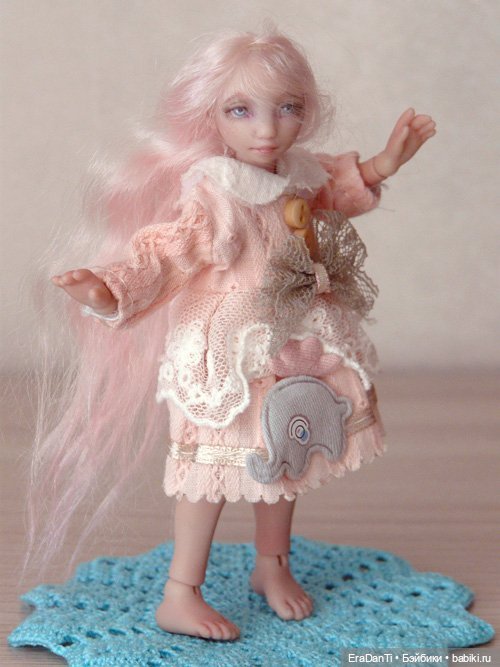 Месяц назад ко мне приехала милая Ниночка от Валентины Игнатьевой. Ждала пока я со своей черепашьей скоростью сошью платьишко и туфельки, чтобы показаться на babiki. Малышка ростком всего 14 см.