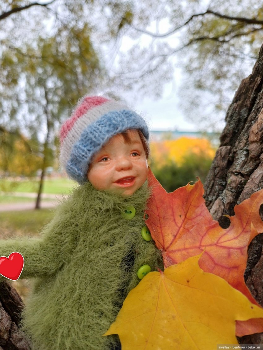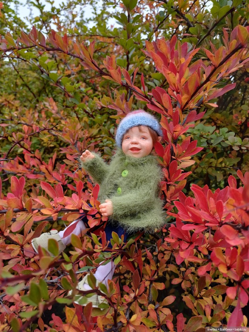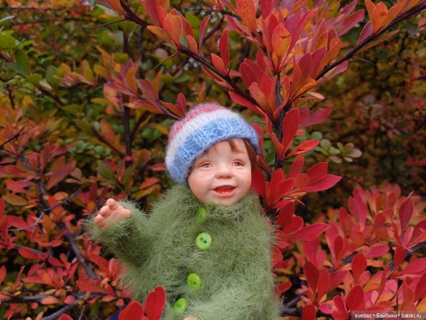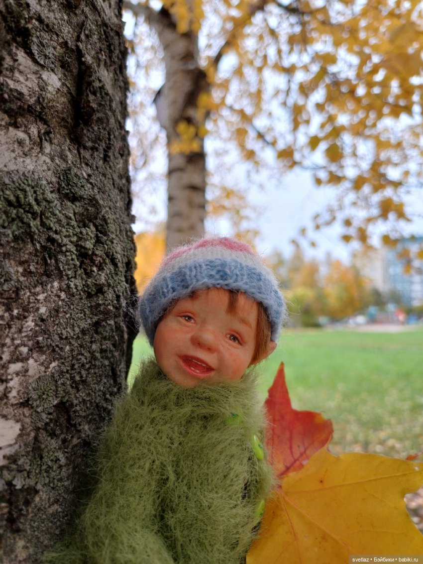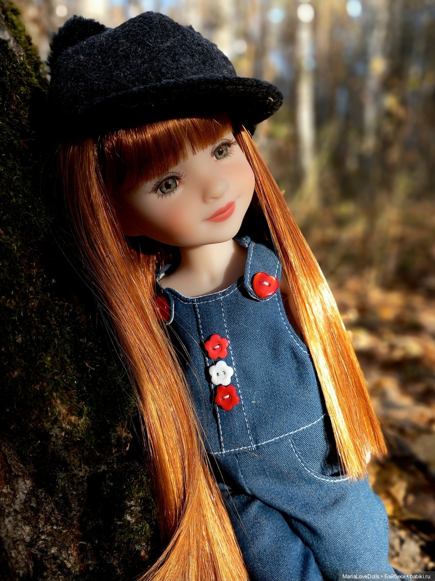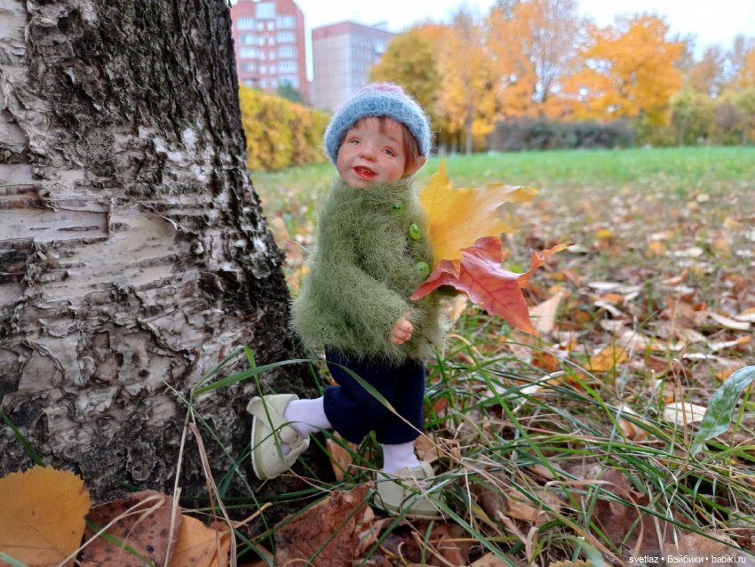 Наряд собрали из того, чем другие куклы поделились, поэтому и такие пестренькие, как осень. Только футболочка и штанишки Васины.
