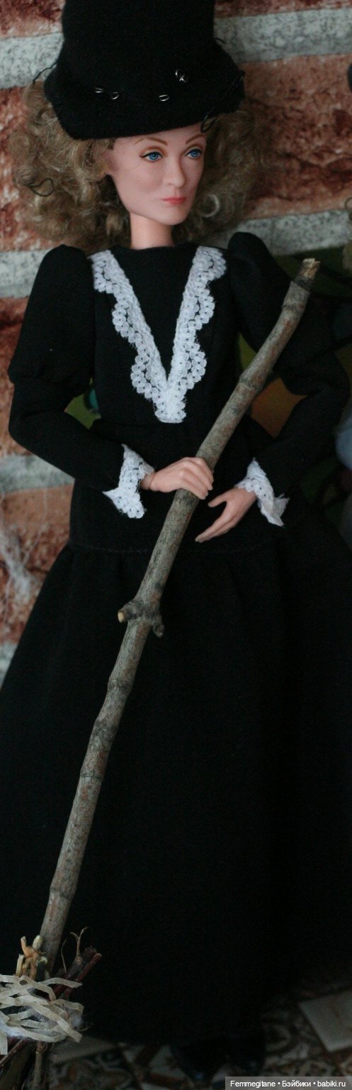 Авторская подставка для куклы, метла и, настоящая, ведьминская шляпа с булавками (!!!). Юлия даже булавки сделала! А настоящей ведьме без булавок в шляпе никак))