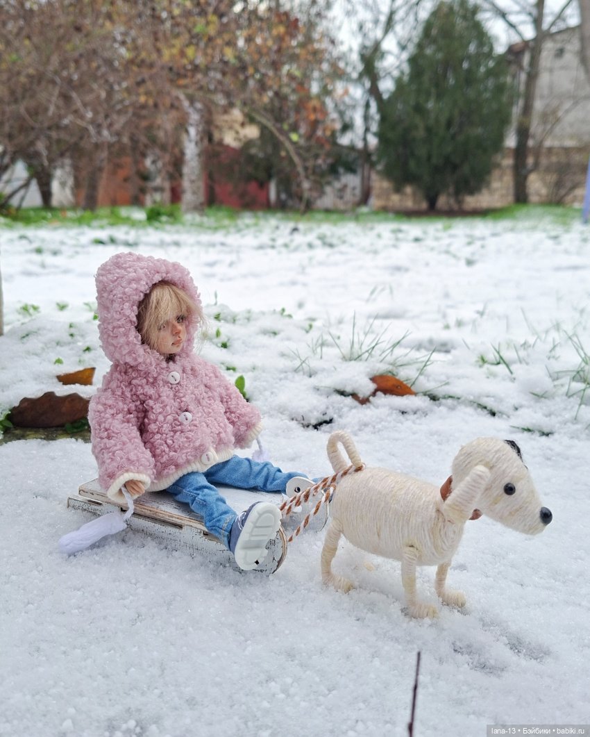 И вот, Жу поехала за город, Дастина с собой взяла)… Красота, белый снег!.. Только, Дастин морщит лобик и глазки закрывает… Вроде как, не очень доволен, мягко говоря))🙄. Домой хочет! В тепло!..