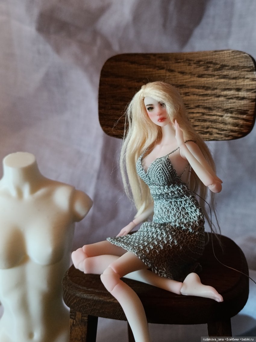 Самую большую тактильность я испытываю к кукольному мини-формату. Эта эльфийка ростом с мою пикси Эви, так что… можете себе представить её миниатюрность. И ведь у автора есть работы ещё меньше! 🙂