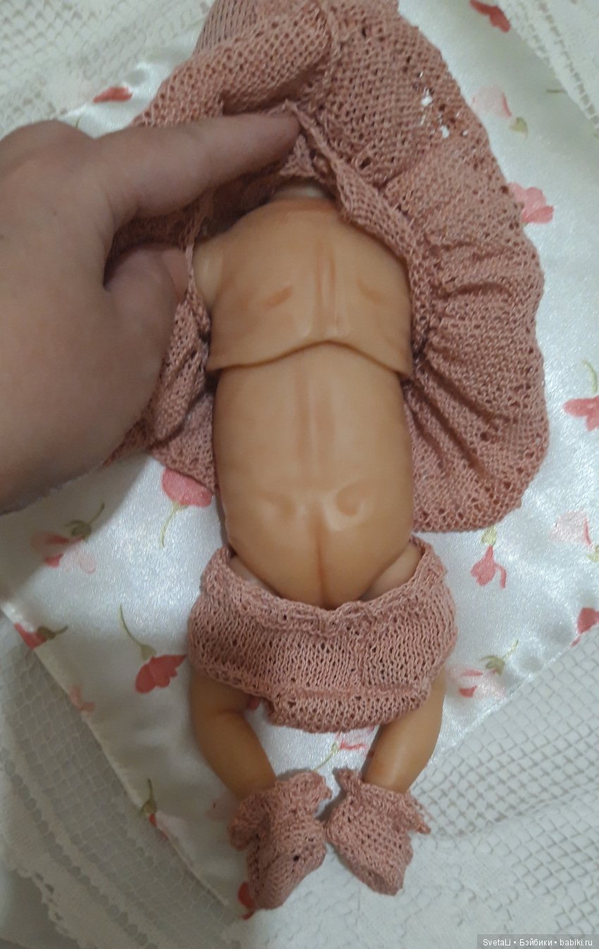 Куколка вылеплена из полимерной глины цернит- полная скульптура( 6 точек артикуляции).Роспись — генезис.Одежда тоже выполнена мной из тонкой хлопковой нити пудрового цвета.Сосочка из полимерной глины. Малышка очень приятная в руках.Рост от макушечки по пятки 24 см.