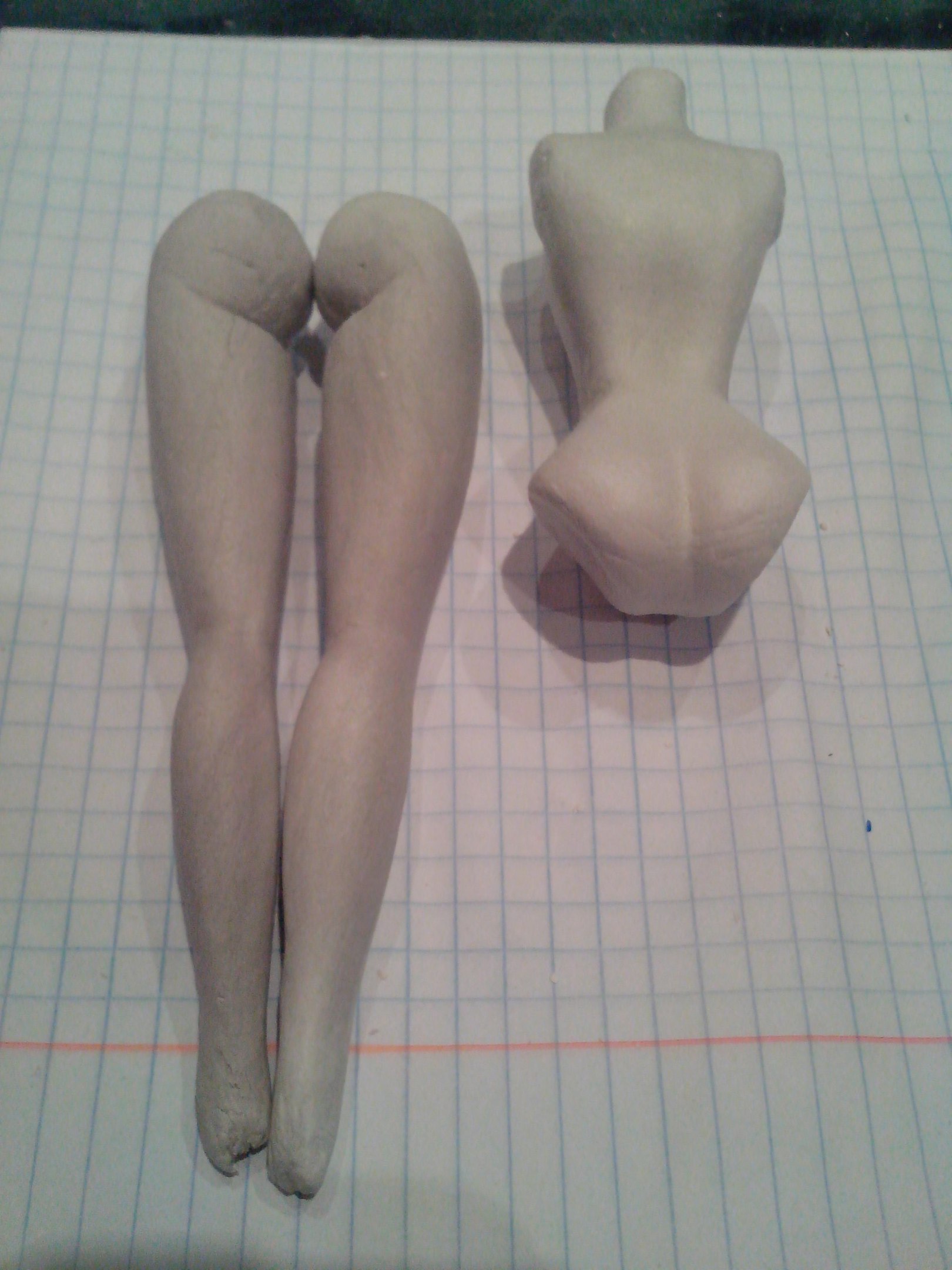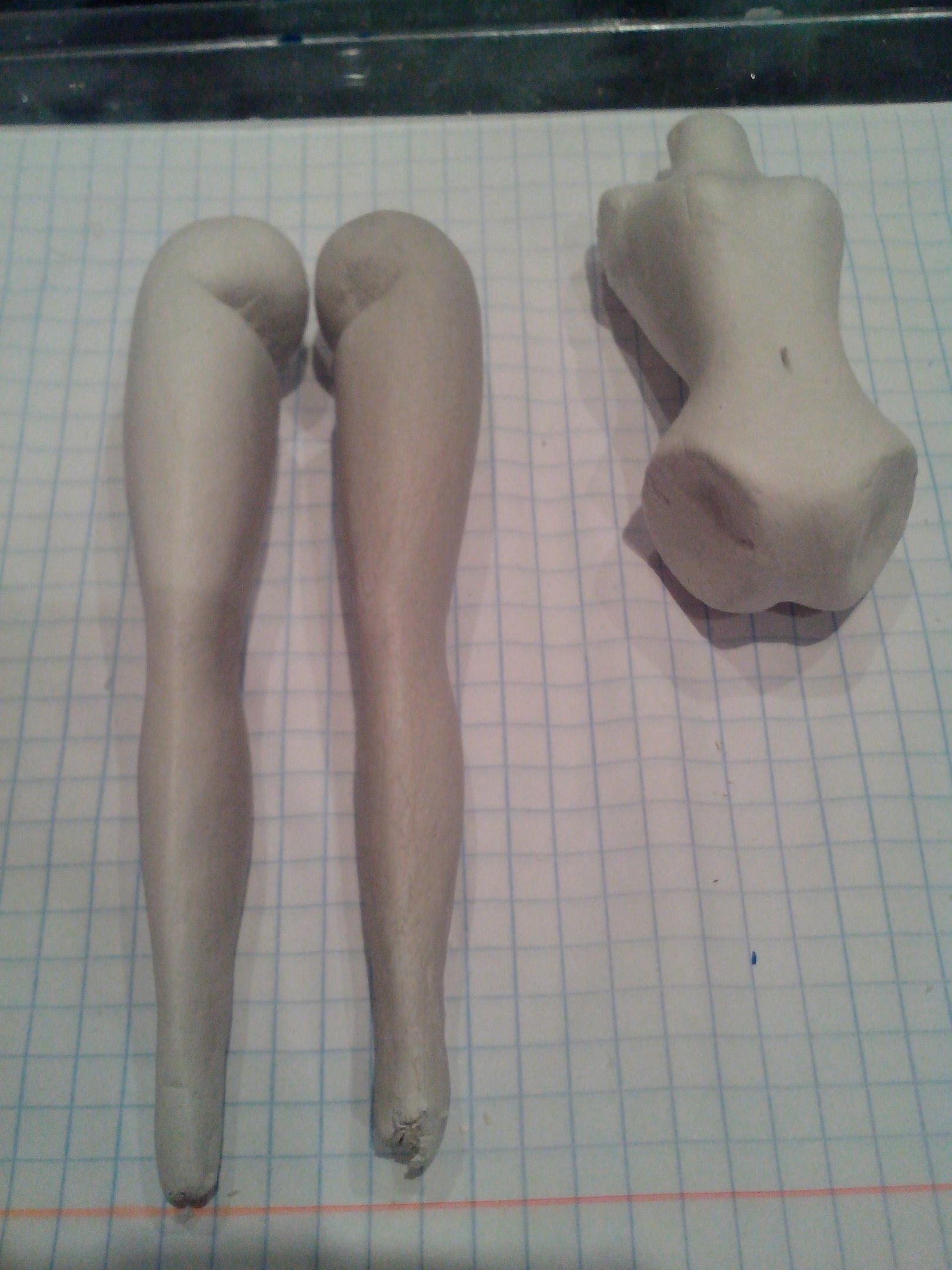 Еще ножки… щиколотка будет подрезаться по длине, тазовые шарики в этот раз лепила сразу целиком вместе с остальной ногой, потому они не совсем круглые — надо будет ровнять, но это потому, когда ноги и тельце высохнут, чтоб сразу и тазовые шарнироприемники вырезать и подгонять… на непросохших детальках это делать трудно — формации разные возникают в ненужных местах… высыхает не равномерно — в тонких частях быстро, в толстых очень медленно… тельце сохнет вторые сутки и все еще влажное.