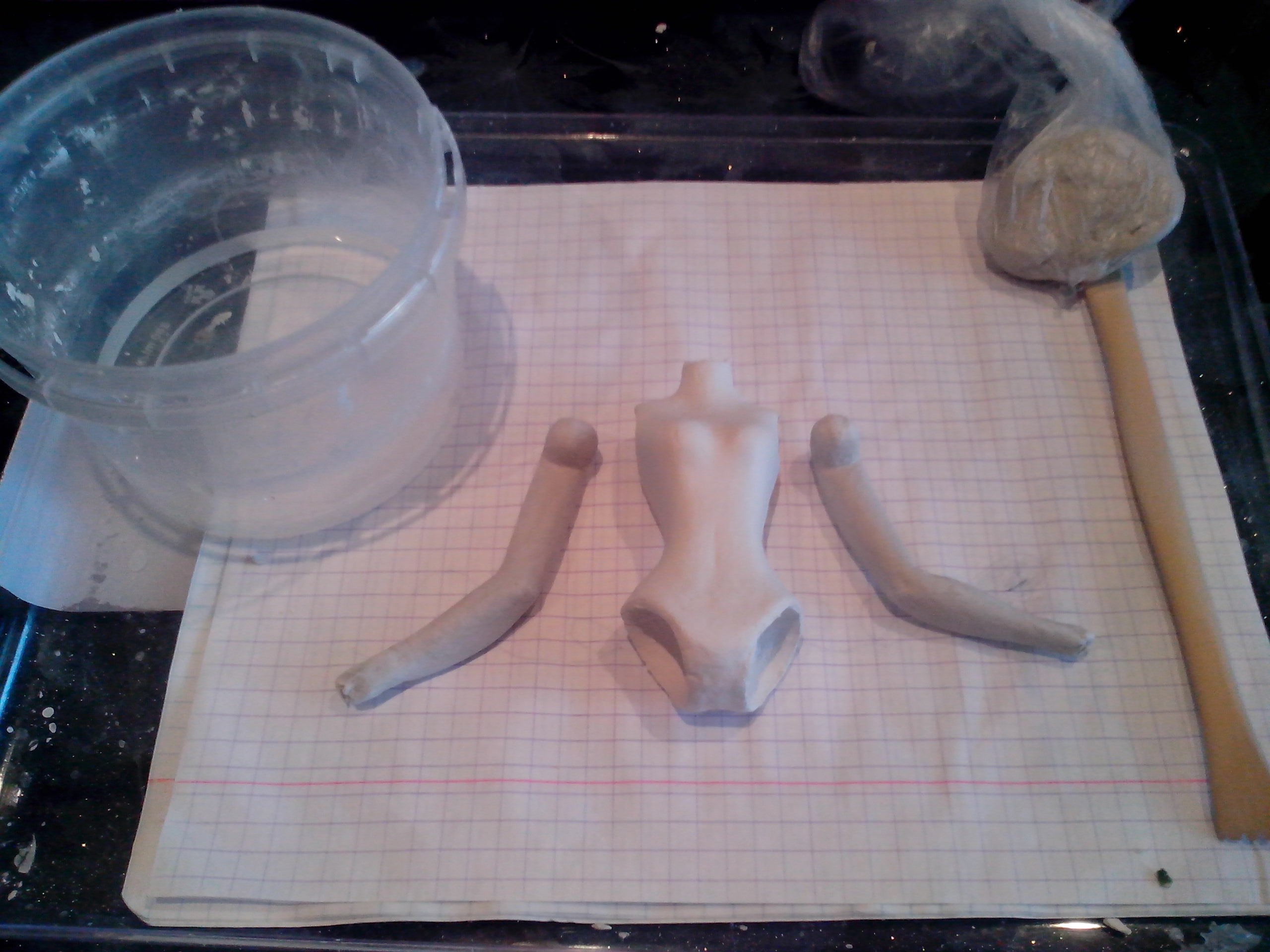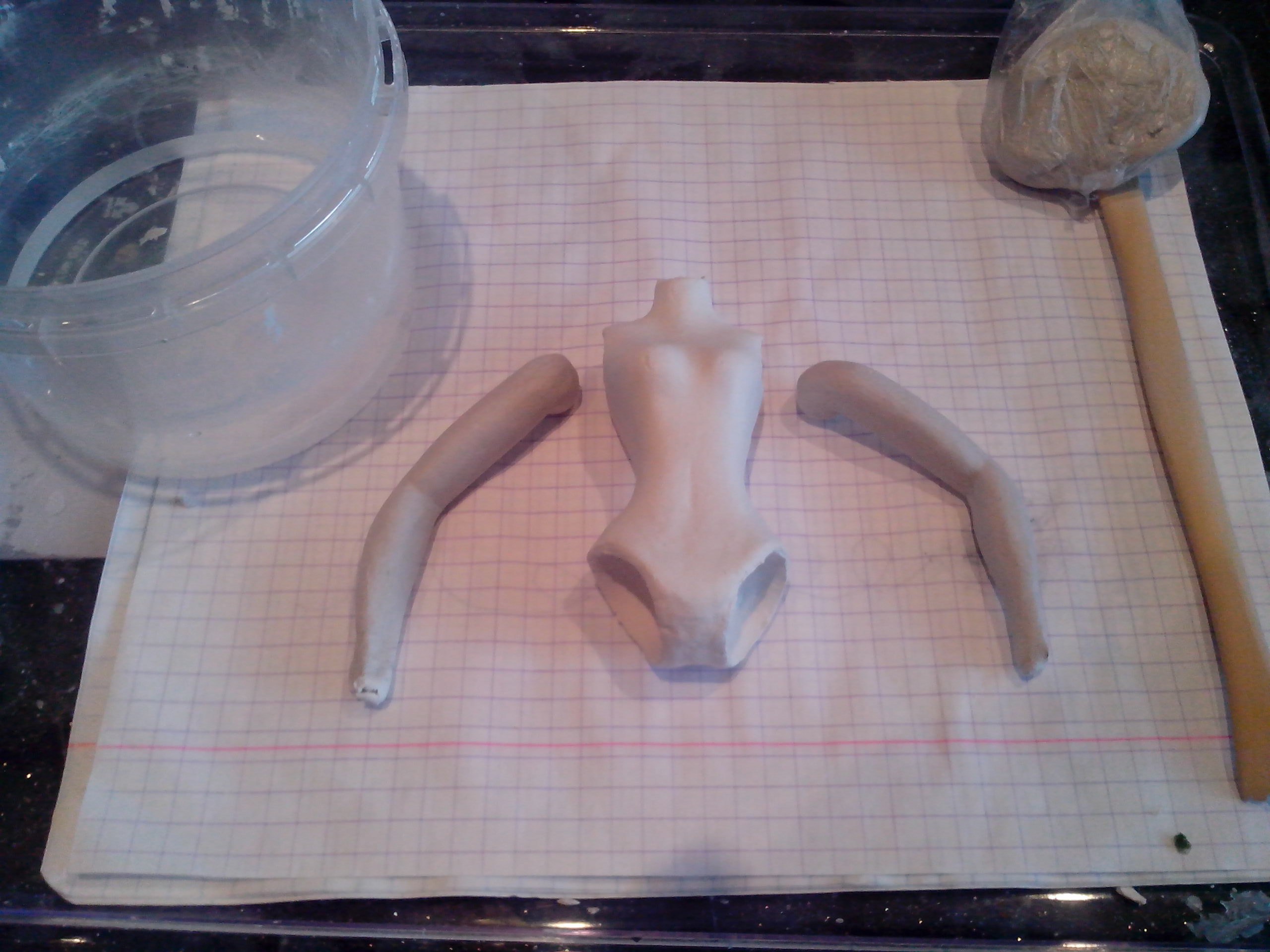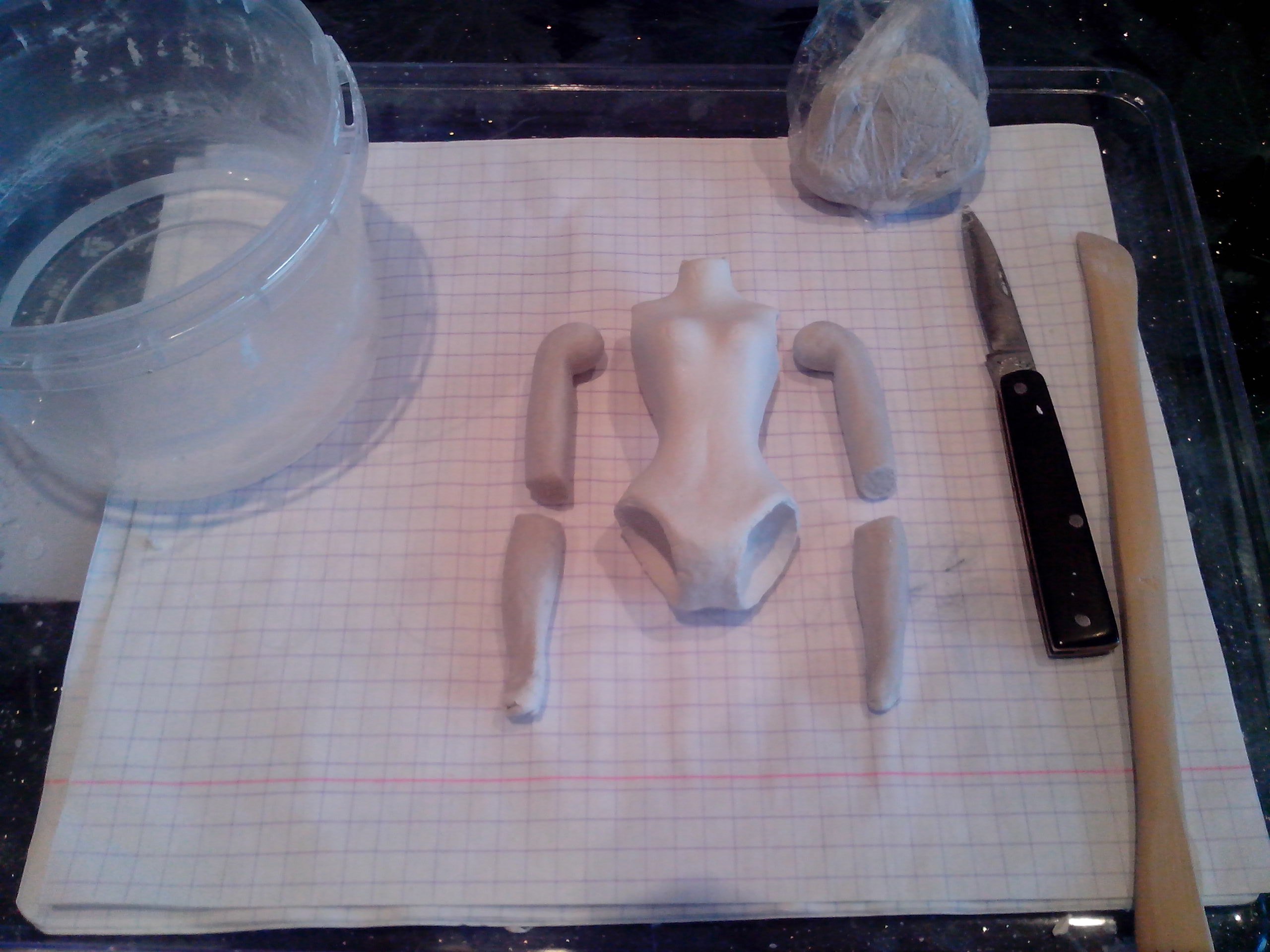 Сижу думаю, что делать дальше… все детальки просохли. При высыхании деформировались тонкие части — запястья рук и щиколотки ног. Деформировались сильно. Придется перелеплять.