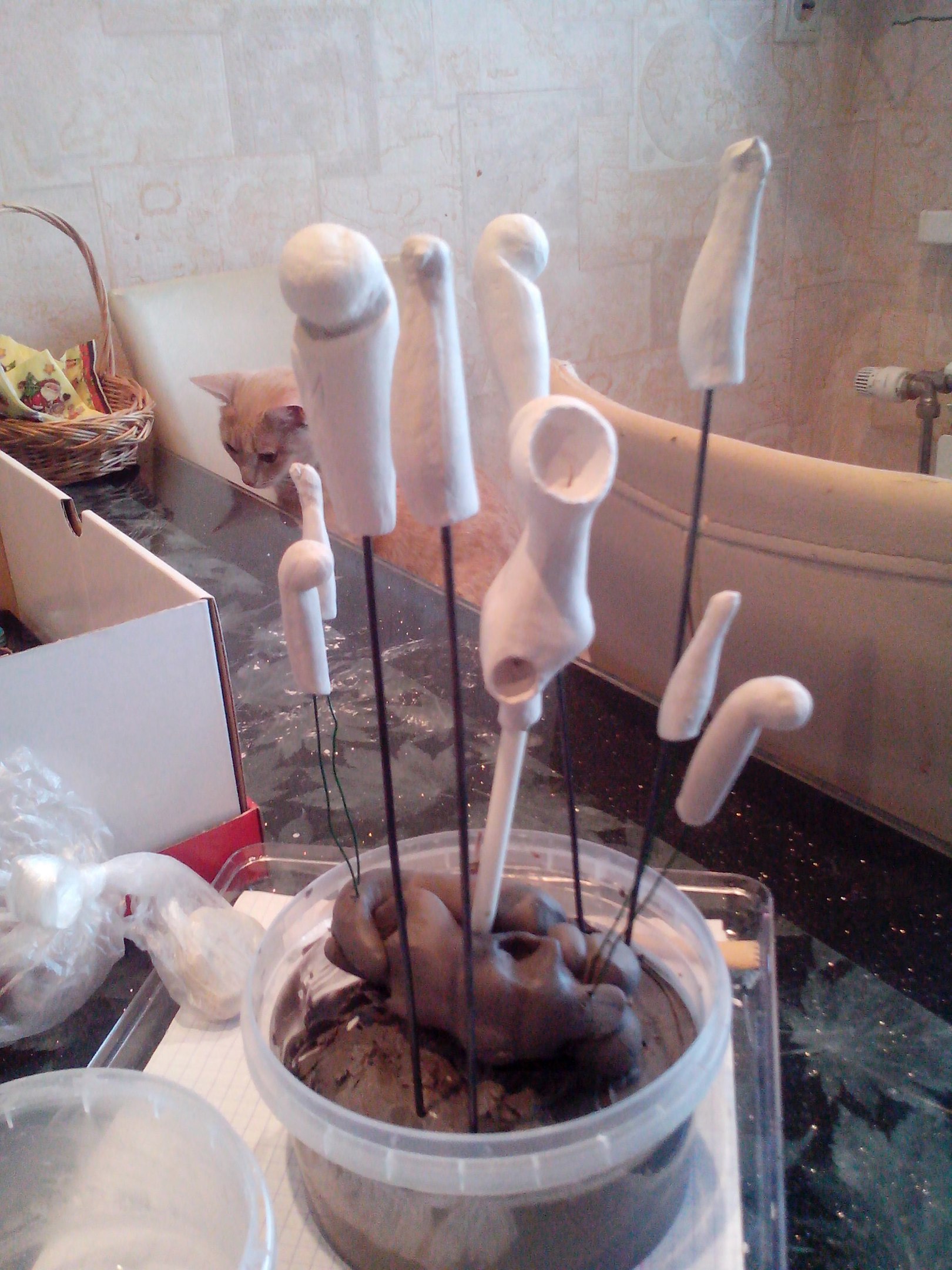Елки-палки! Я забыла заложить полости и в тельце и в ногах! Что теперь делать? Детальки уже подсохли и наколоть их сейчас даже не металлическую спицу не получится! Опять все замачивать и переделывать? Блин! А так хорошо получилось…