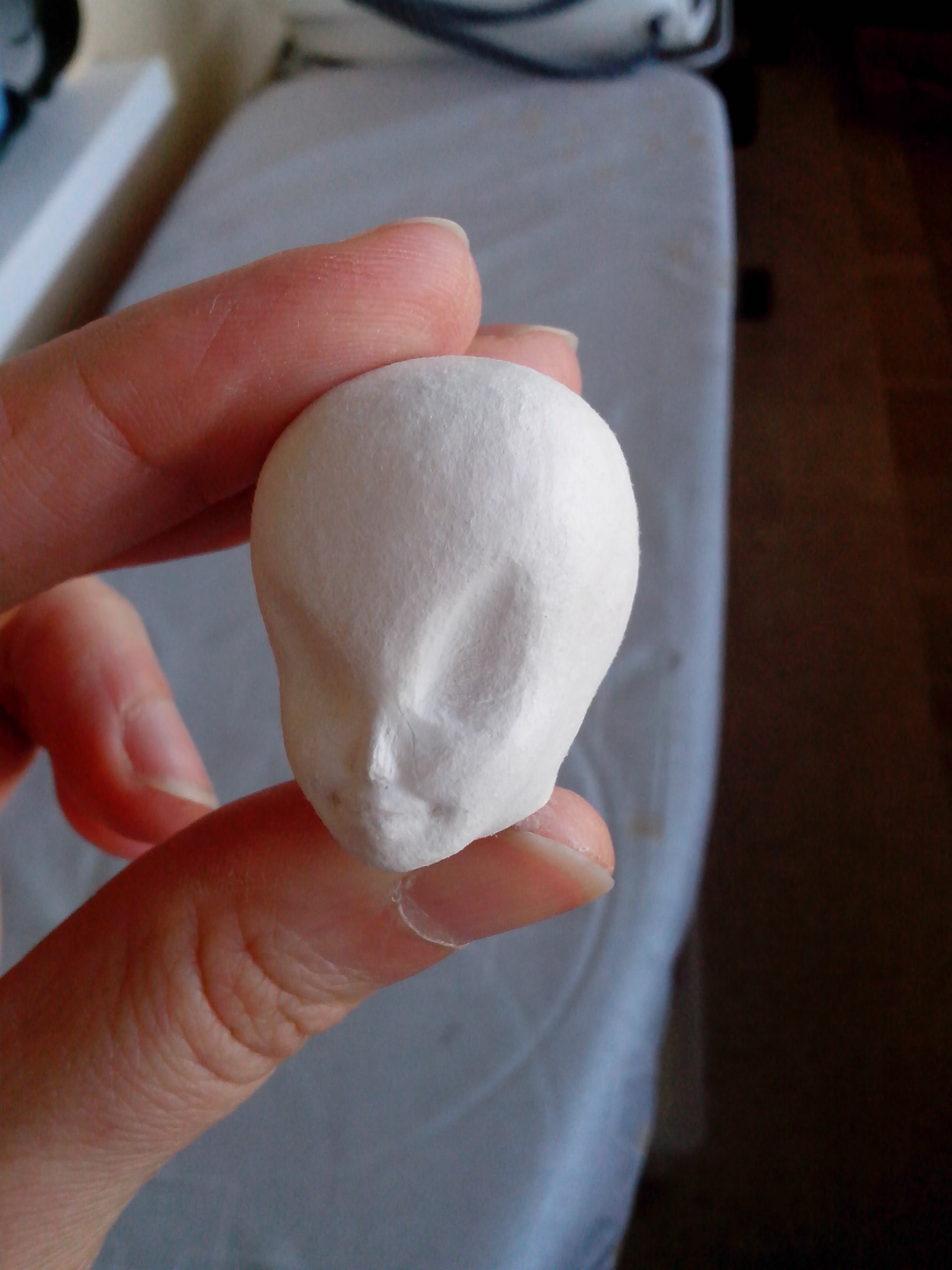 Ради шутки еще сижу порчу голову. Раз она получилась космической, так я и лицо ей вышлифовала более космичное… на Каспера из мультика стала похожа…