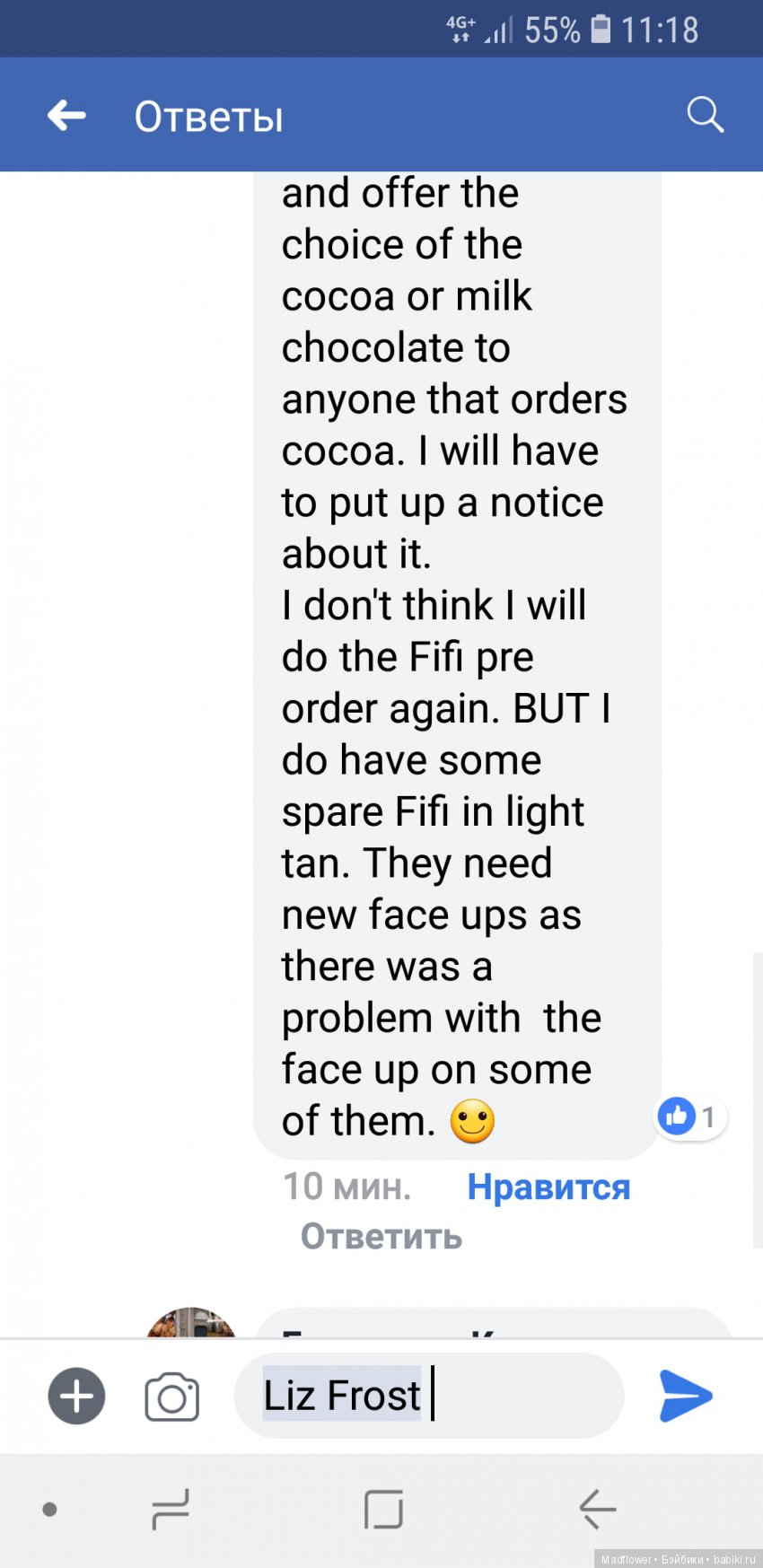 У Лиз есть в наличии несколько Фифочек. А вот предзаказ она вряд ли откроет еще раз. Так что, думаю, Вы обо всем договоритесь лично! Если нужна помощь, пишите!