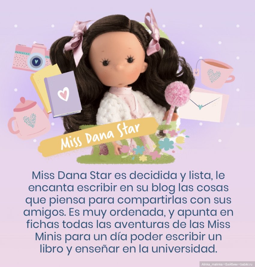 Мисс Дана Стар- Miss Dana Star — без сомнения, самая жадная из всех Минис. Она любит шоколад, пирожные, мороженое, и может провести целый день, съедая желейные драже. Её любимый цвет- красный, и ей очень нравятся яркие цвета фламинго :)