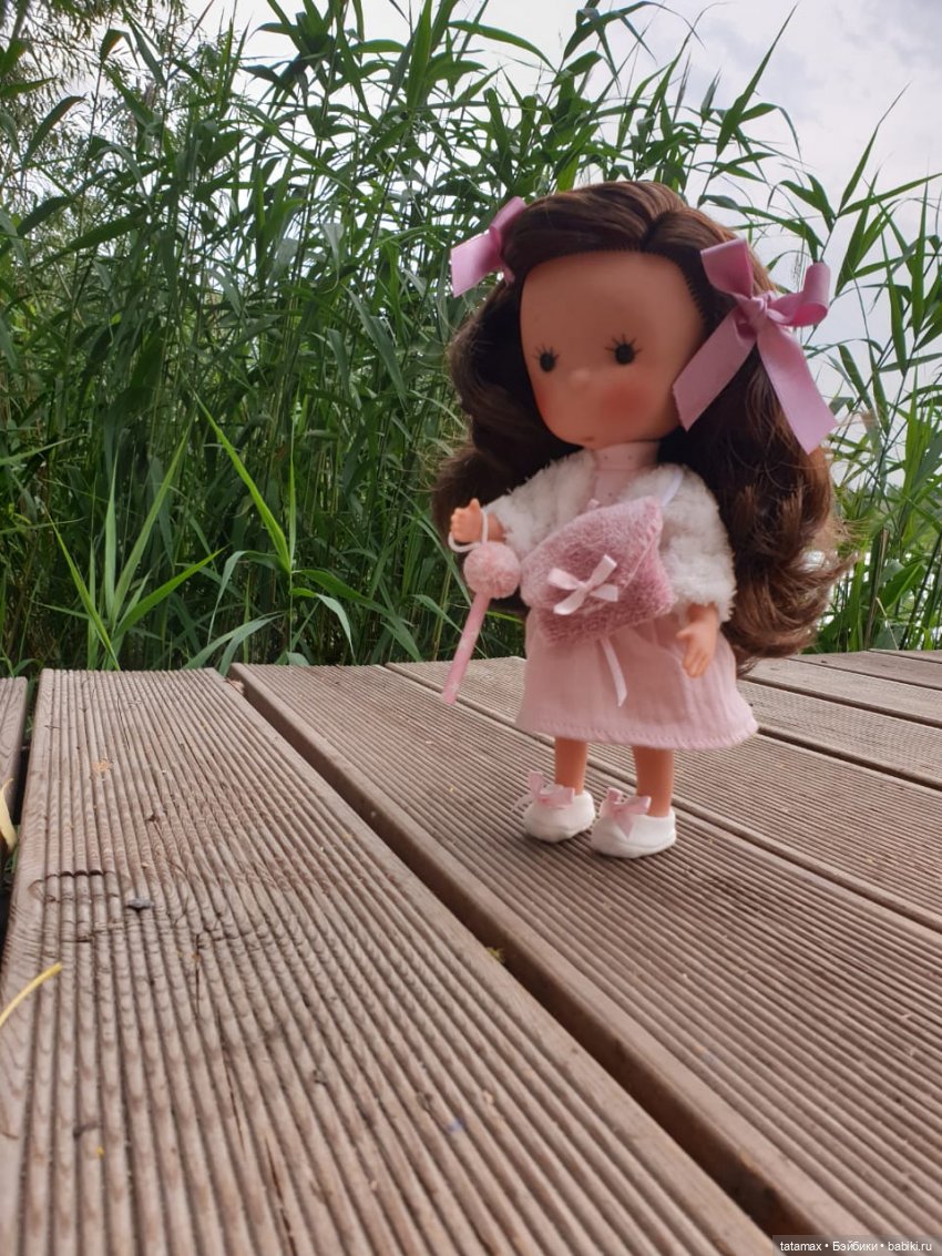 Наверное многих интересует, во что же можно переодеть этих милашек из уже имеющегося в запасах. Голова у нас большая, умная, отлично подошла шляпка от Готц. Ножка маленькая, 3,3 см длина и 1,8 см ширина, резиновые туфельки-лодочки от набора для Аси от Весны чуть велики, но для фотосессии надеть можно. То же с сандаликами для литлфи, хорошо, что они с ремешками. Платья годятся от весновской Аси, кроме тех, что с длинными рукавом. В шляпке Белла напоминает младшую сестру из Тоторо, поэтому решила добавить в техническое фото немного деталей)) велосипед и фотоаппарат отлично вписались. Кстати, моя Miss Minis почему-то пахнет прованскими травами, хотя Ллоренс не ароматизируют своих кукол.