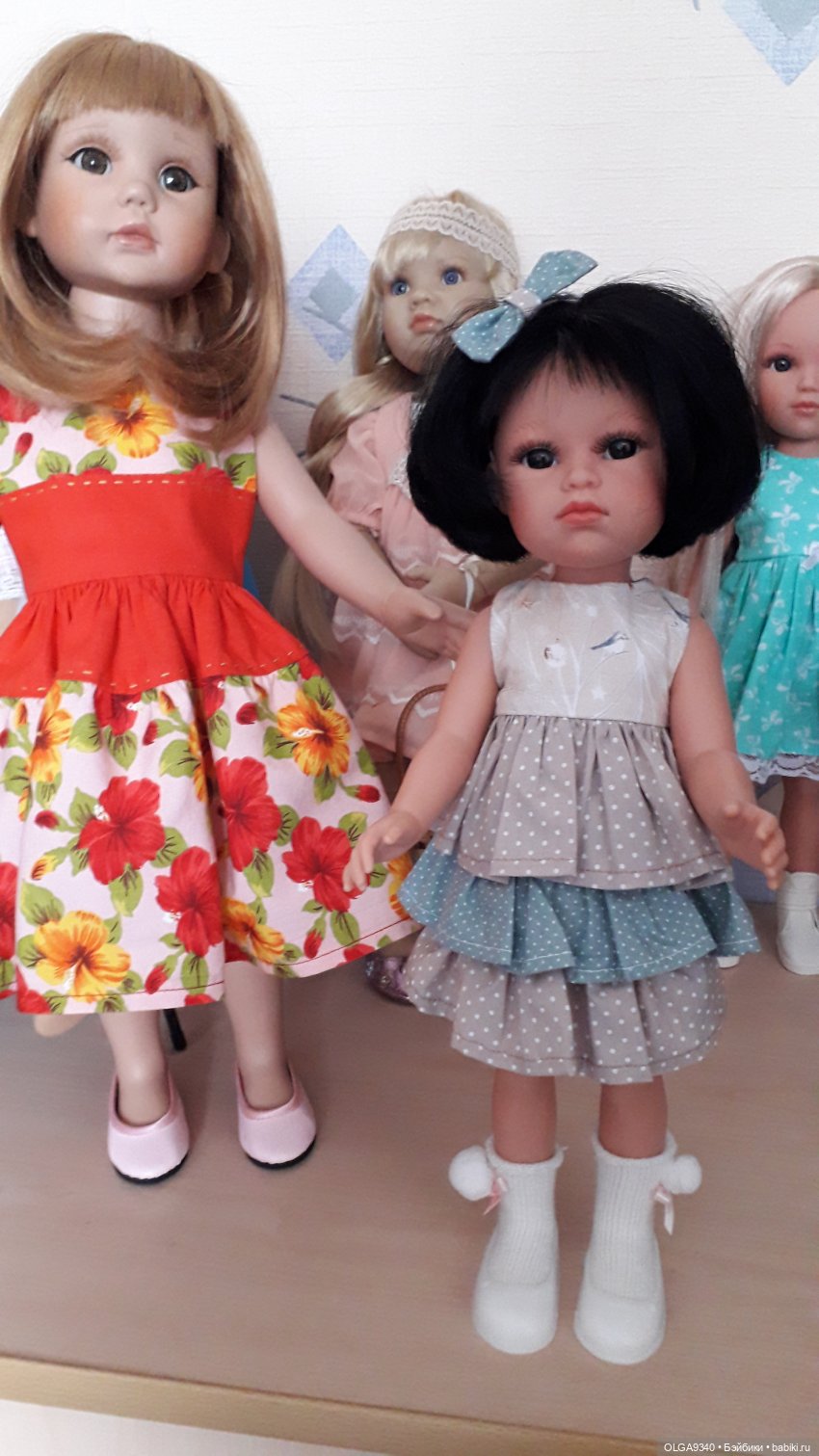 Вот на узкий фотофон попыталась сфотографировать кукол вместе.