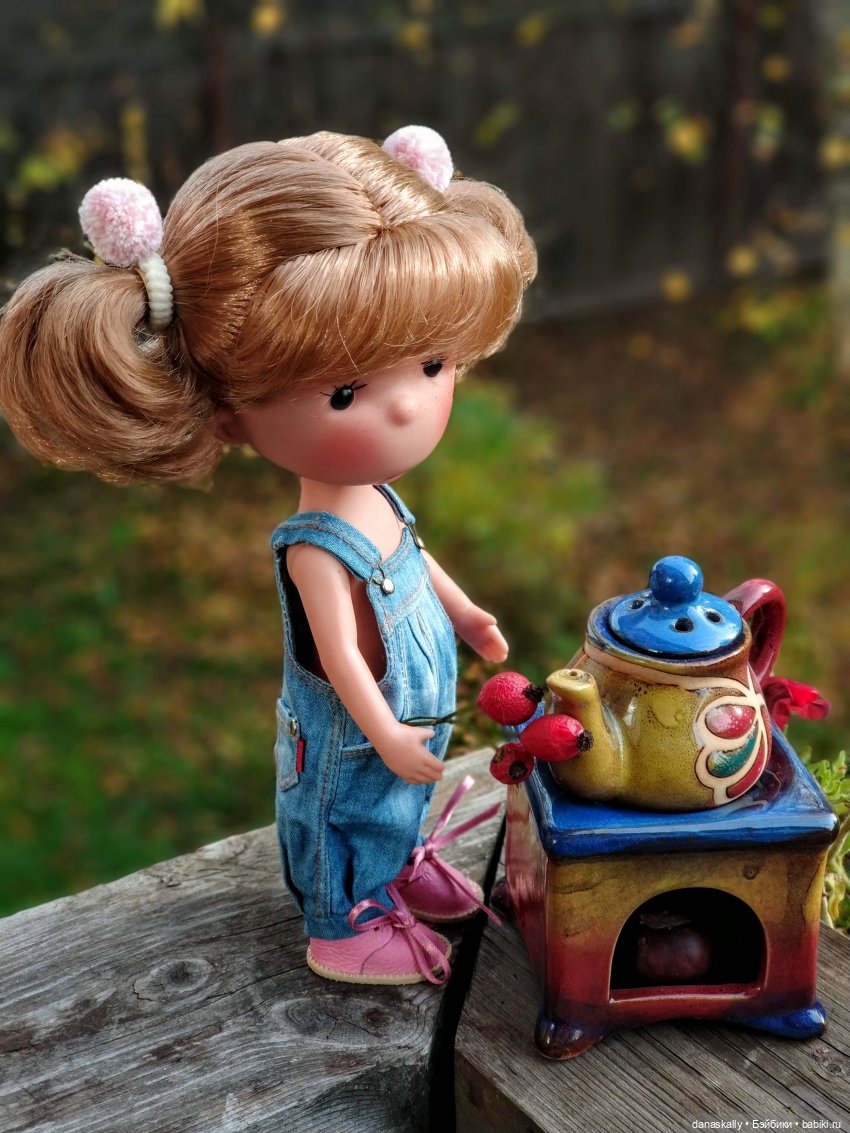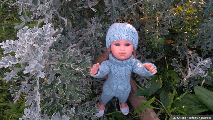 Живёт Хелена у меня полтора года. Уже связали для неё несколько нарядов, сделали много домашних фото. Даже поучаствовали в конкурсе. А вот на улице я её смогла сфотографировать только в октябре этого года. Получилось, что тот день, 16 октября, был одним из последних теплых дней осени. Потом стало холодно и дождливо.