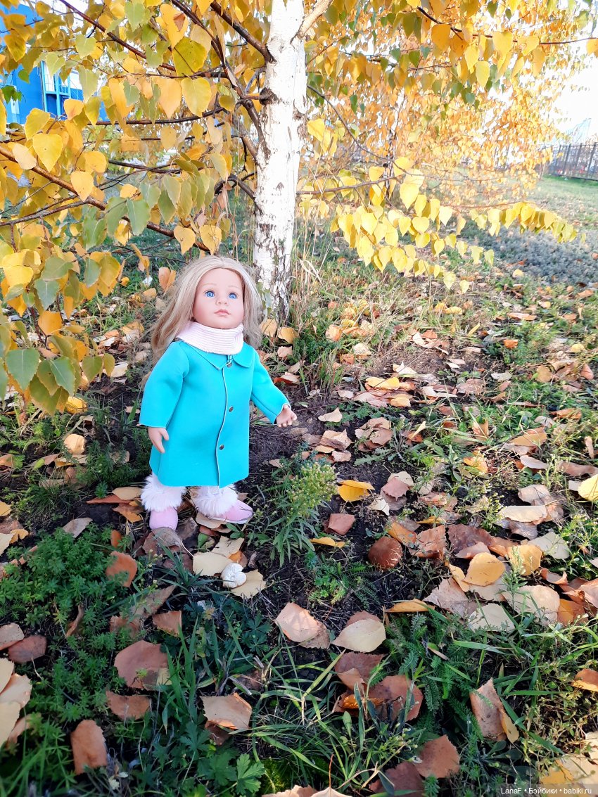 Эта куколка у меня появилась аж на Новый Год — Дедушка Мороз прислал. Голышкой. В этих больничных трусах в которых они все ходят в Испании ( я про испанских кукол которых продают голышками:)). Ну и вот наконец я ей сшила комплектик из лоскутов которые у меня отыскались. Трусики новые тоже сшились понятное дело:) Фасончик на ходу придумала — понравилось как эти ткани смотрятся вместе. Сумка — одолжили у моей Our Generation куколки:) хотя вначале хотела сама сделать что-то в виде сетки с ручками деревянными но не хватило терпения уже, после того как сделала ботиночки уже хотелось закончить:) — и так уж девочка всю зиму, весну, и половину лета простояла в чем была изначально. Плащик — думаю плечики можно было сделать несколько поменьше, но уж так построила изначально, чтоб эдакое ретро получилось. Не знаю. У нее не очень простая внешность на самом деле — вроде как и яркая с зелеными глазами, прям такая вся контрастная, драматичная, а с другой стороны — ну очень нежное личико.