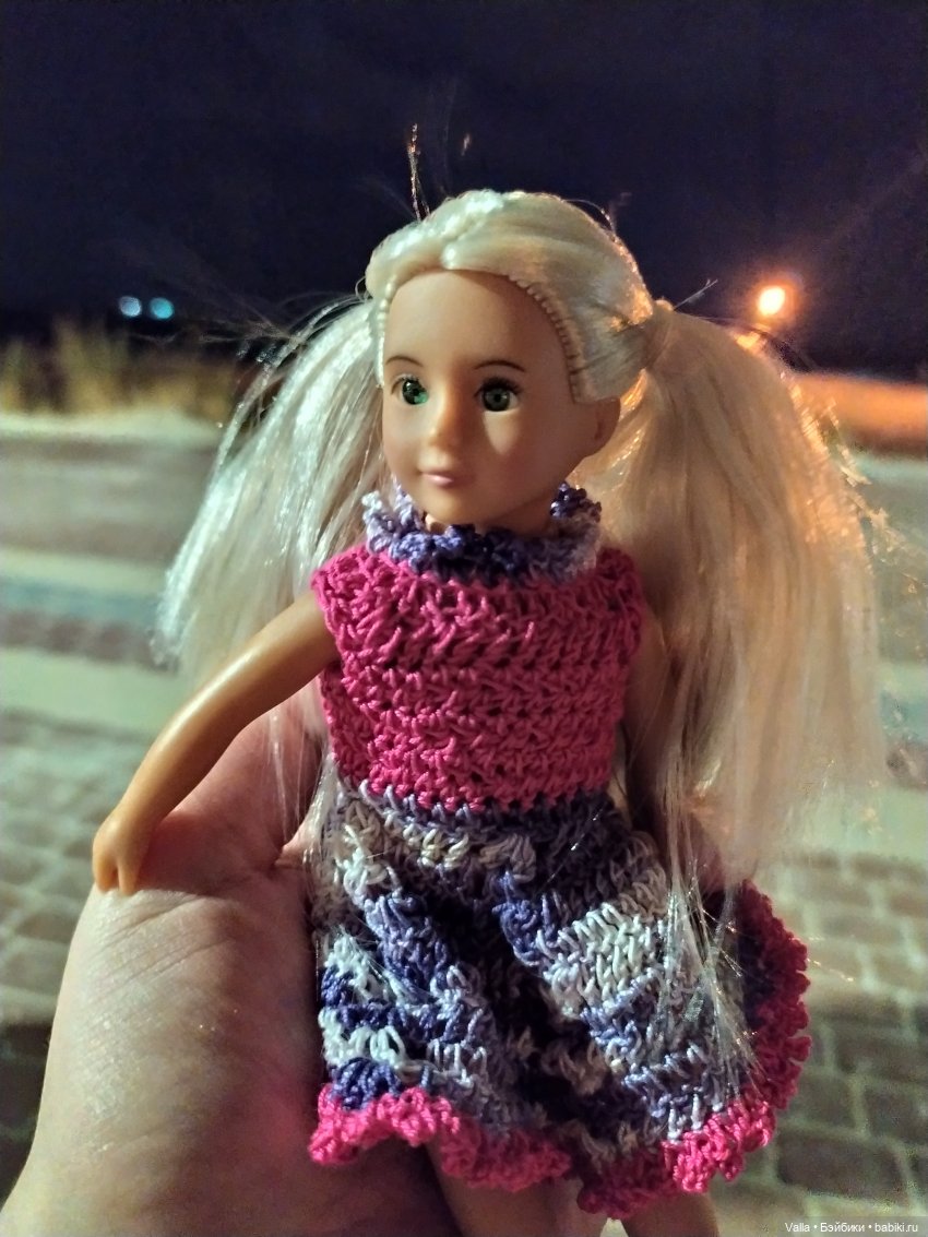 «Дурная голова ногам покоя не даёт!» Это верно. Три дня подряд езжу в «Детский Мир». Позавчера обратила внимание на эту девочку, или она на меня. Посмотрела, а у нее тело мягконабивное. Повертела-повертела, да и поставила обратно на полку. А вчера после топика с просьбой посоветовать маленькую куколку, нашла информацию об этих малышках. Интересно было бы посмотреть все 42 девочки, но вряд ли они все были у нас в магазинах. Мальчика сегодня тоже видела. Может потом, когда-нибудь приобрету. Подумаю. Сегодня я изменила отношение к телу, подумала, что это даже интересно — у такой маленькой куколки тканевое тело, необычно. Сегодня пересмотрела все коробочки с этими куколками, откладывая в сторону тех девочек, что мне понравились. В итоге все равно взяла ту, что улыбнулась мне позавчера. Последнее время предпочитаю голубоглазых блондинок. Не люблю, когда одежду или головные уборы прибивают к куклам. Косы приличные, а вот прошивка мне показалась не очень густой. Наверное, не стоит распускать косы. На коробочке указано — Brinne. Но я хочу дать девочке другое имя. Может быть у вас есть варианты? Пока я зову её Лори)