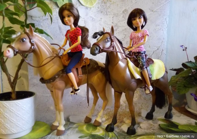 А теперь мои всадницы осваивают тонконогих кобылок от ФиксПрайса)))
