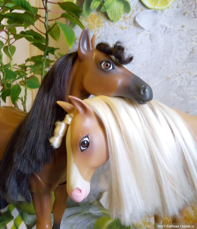 Несмотря на 15 см роста, она прекрасно держится в седле. Еще бы — фирма Breyer создает модели лошадей с 1950 года! У Хетер шарниры в руках, локтях, бедрах, коленках и талии. Я приобретала ее с седлом и уздечкой, но без лошади. А лошадь пришла ко мне другим путем, и видно, что путь ее был труден и долог. Но, накинув уздечку, как туфельку на ножку Золушки, стало ясно, что пара состоялась.
