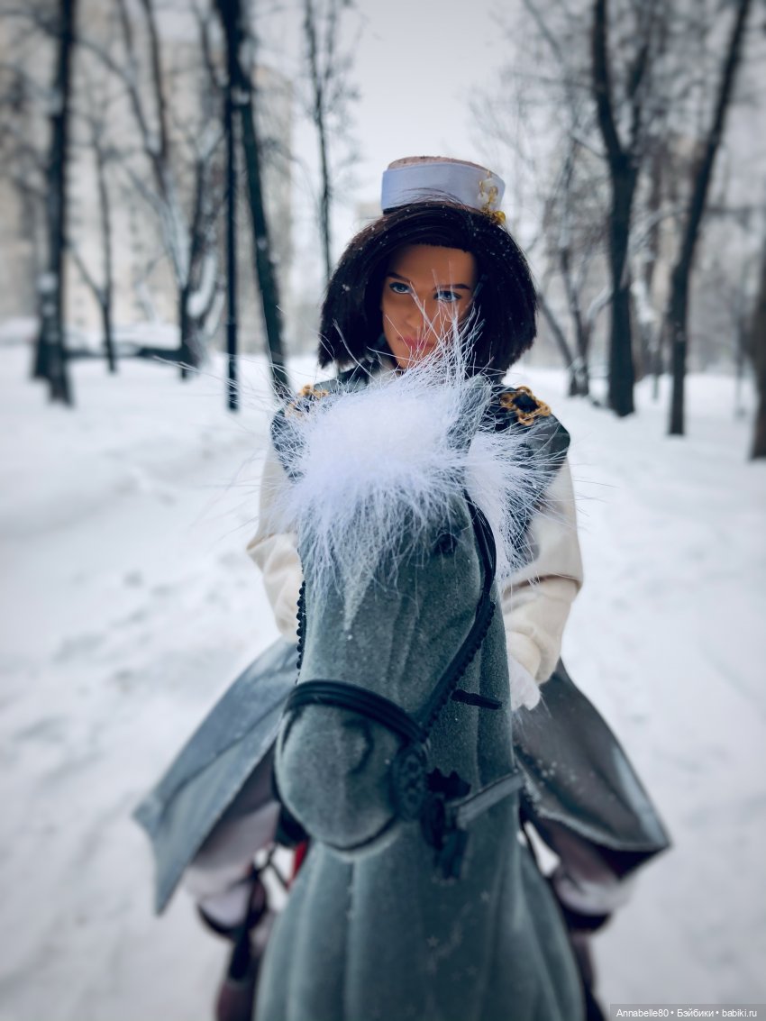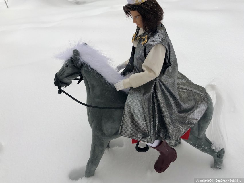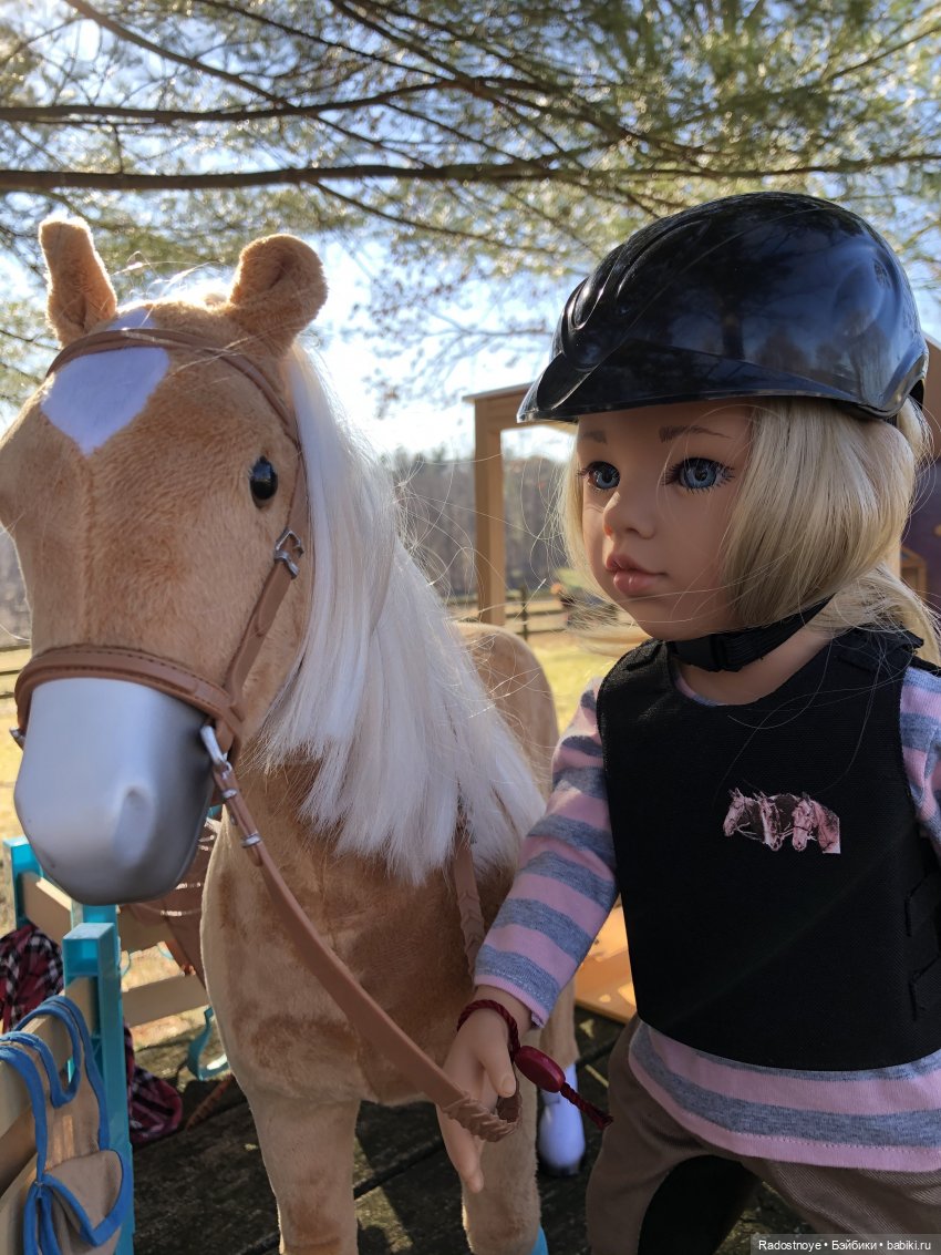 У Софии сгибаются коленки на три щелчка, и она отлично сидит в седле. Но обратите внимание на аутфит! Все же по-настоящему, хотя ее рост 18 см.