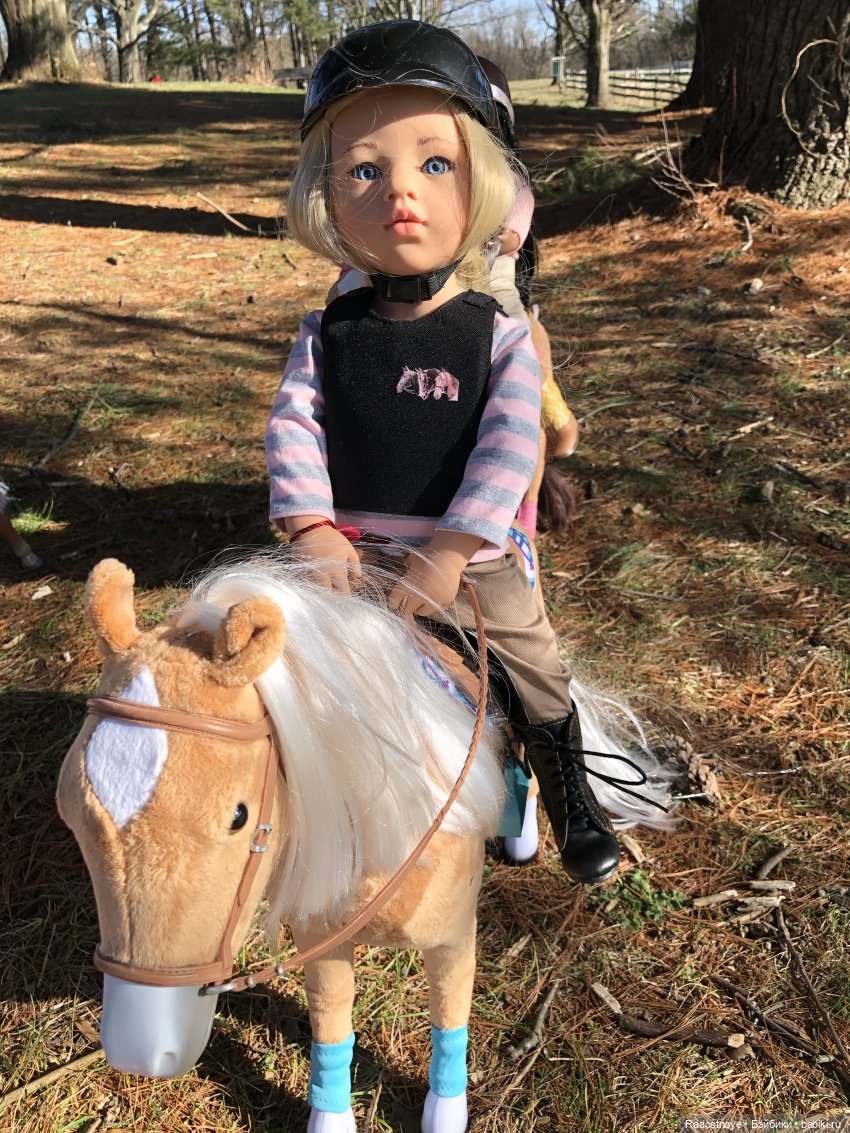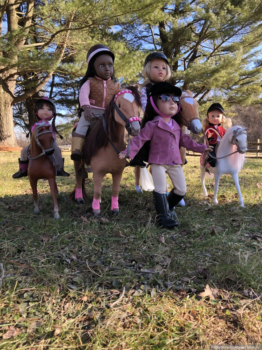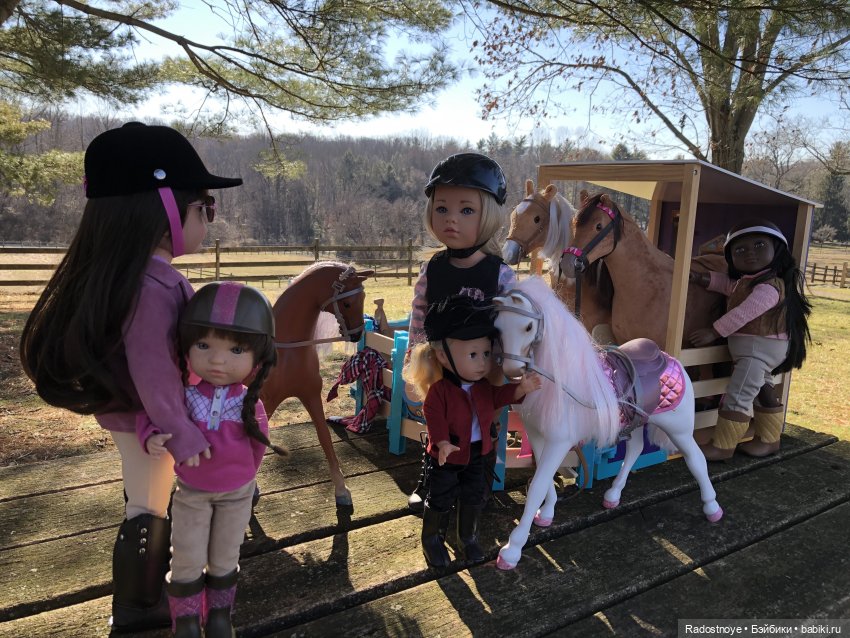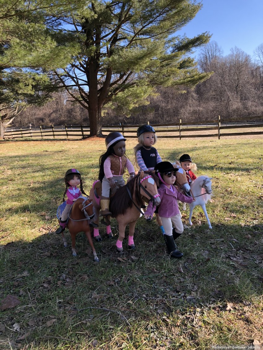 А мы вот. Только фото пока маловато. Потому что вначале я купила лошадь и только потом я купила кукол:))) и общих фото пока нет:( потому что костюмы для верховой езды пока еще собираются в посылку вместе со второй лошадью в Сша:) У меня АГ лошадки. Это первая. А ждем тяжеловозика:)