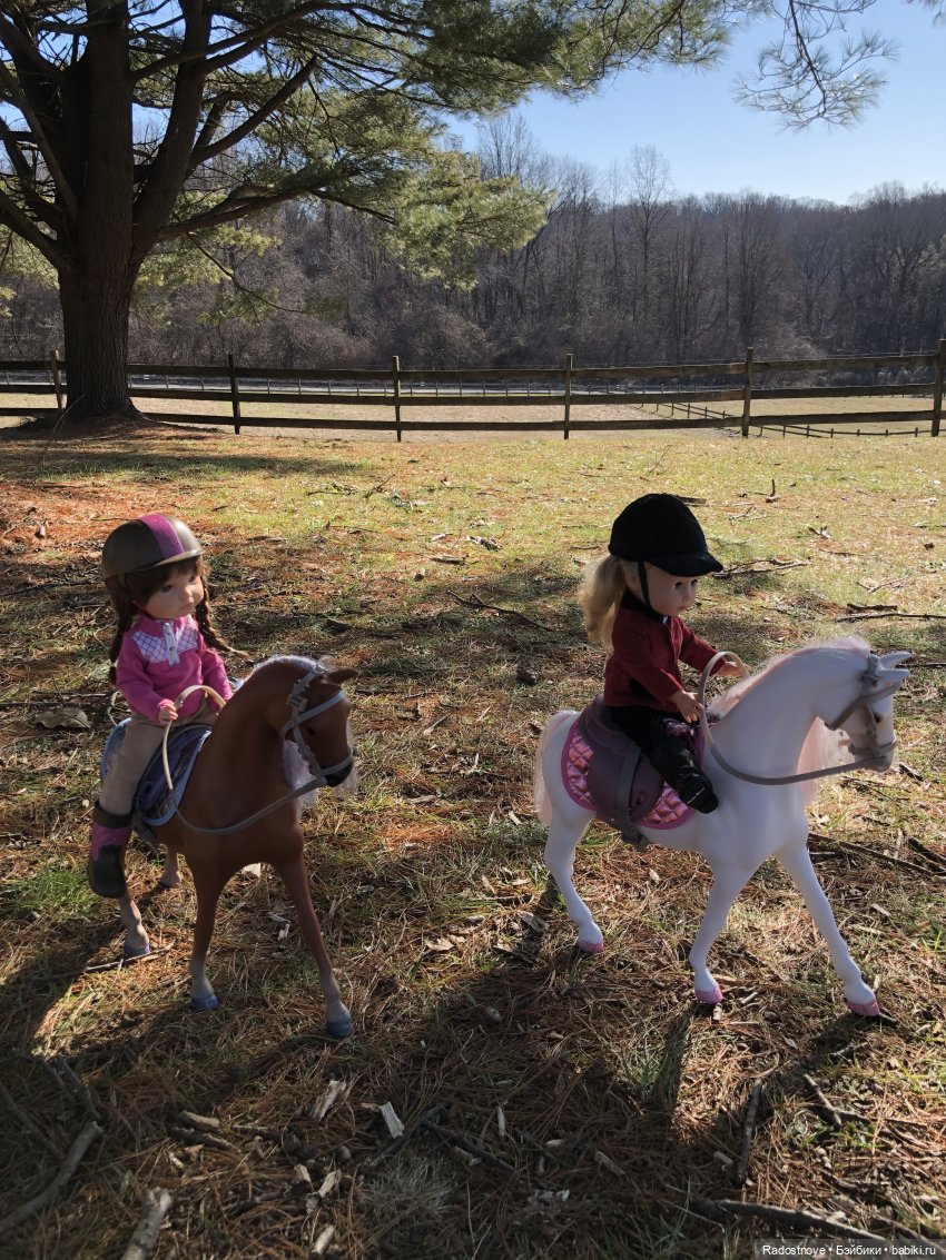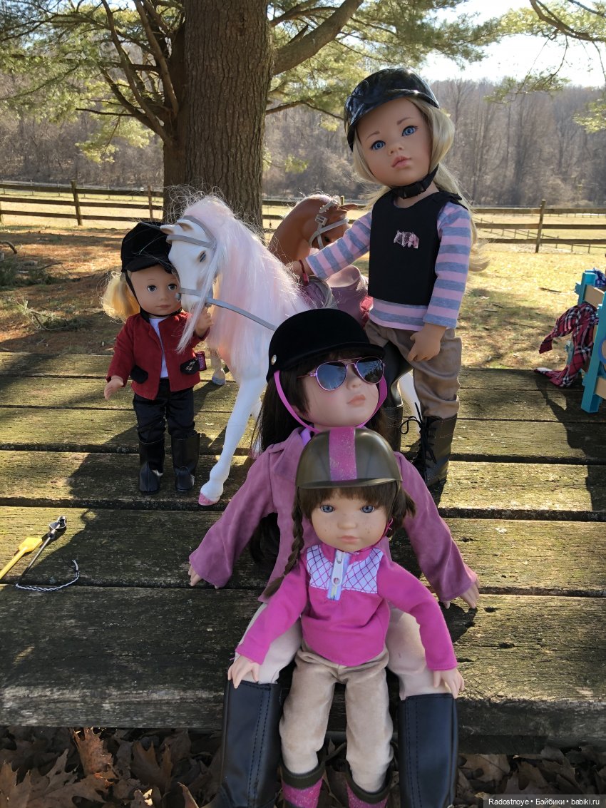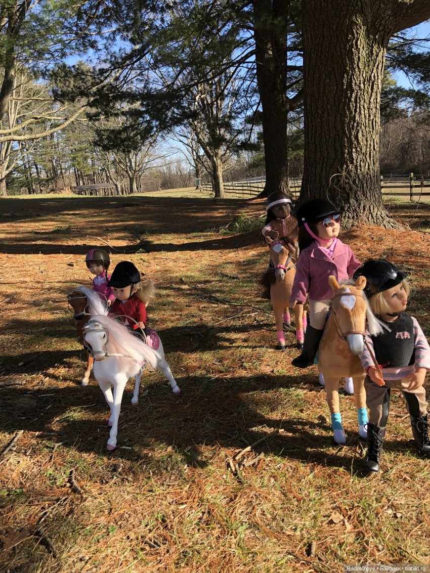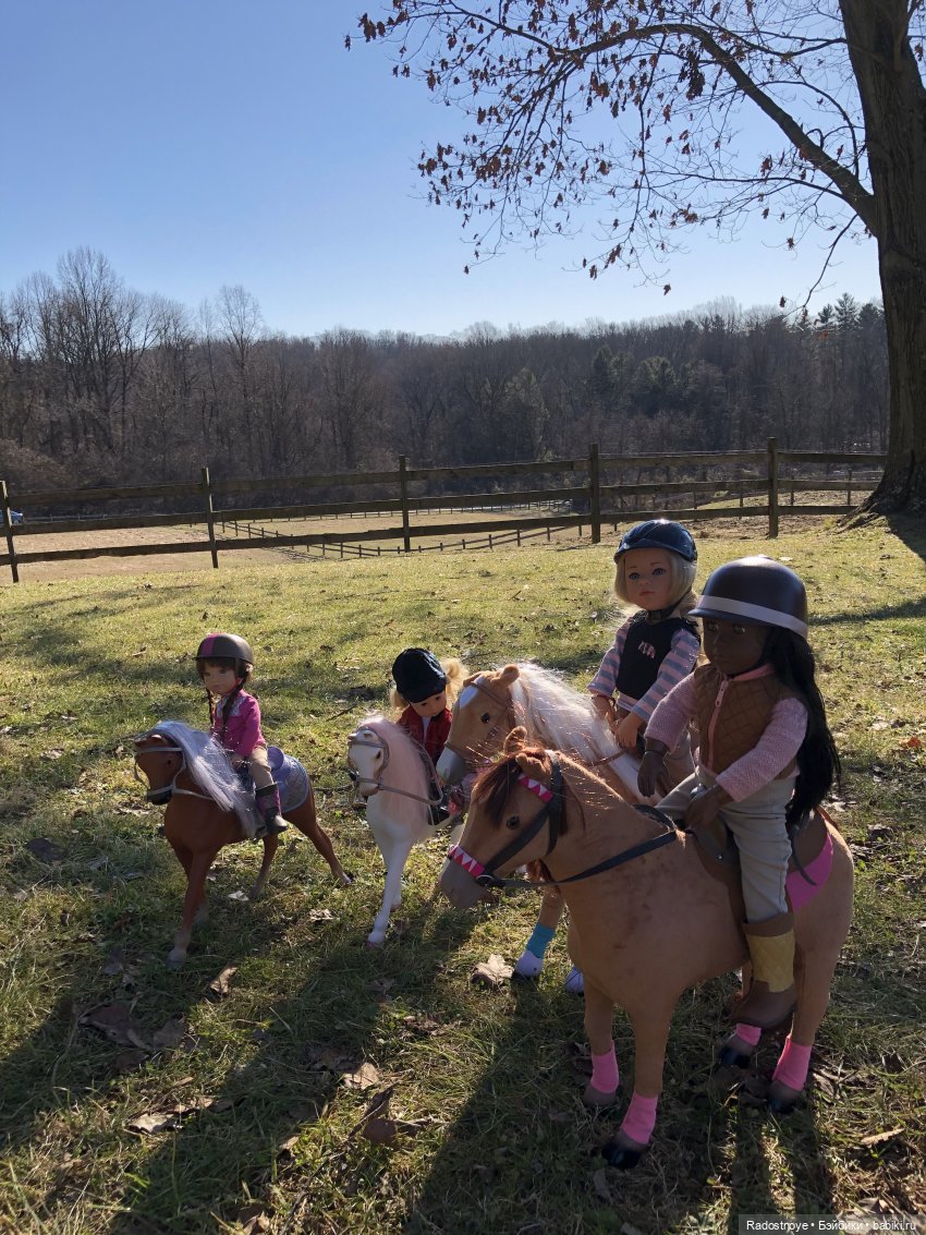 А мы вот. Только фото пока маловато. Потому что вначале я купила лошадь и только потом я купила кукол:))) и общих фото пока нет:( потому что костюмы для верховой езды пока еще собираются в посылку вместе со второй лошадью в Сша:) У меня АГ лошадки. Это первая. А ждем тяжеловозика:)