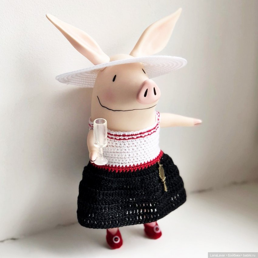 А вообще она такая же, как и обычные куклы, тоже любит наряжаться, но только одно условие, быть солидной, благопристойной свинкой.