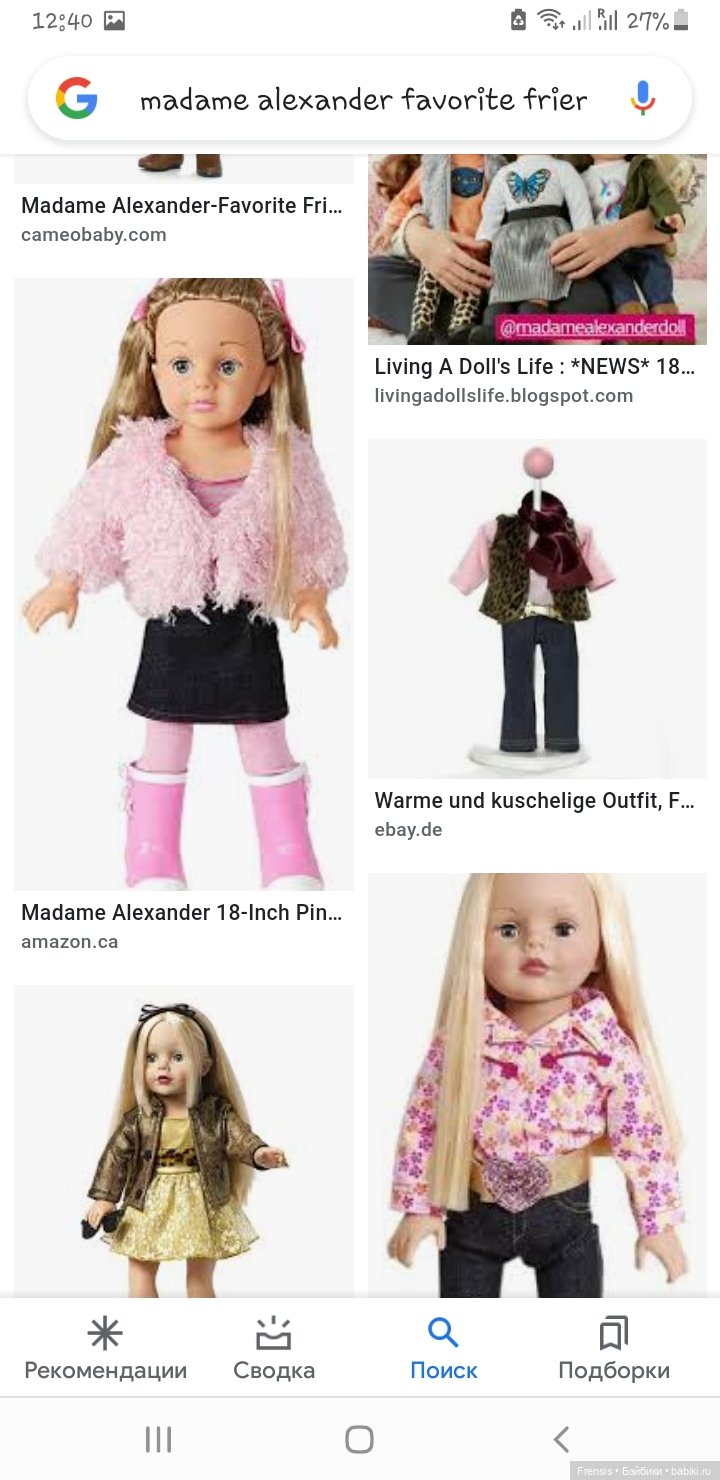 Попробуйте в Гугле набрать вот эту фразу… madame alexander 18 inch doll… Там намного больше фото и коллекций выйдет, чем если по русски набирать. В России кажется только 2 выпуска этих куколок было… Может все же там опознаете свою девочку.