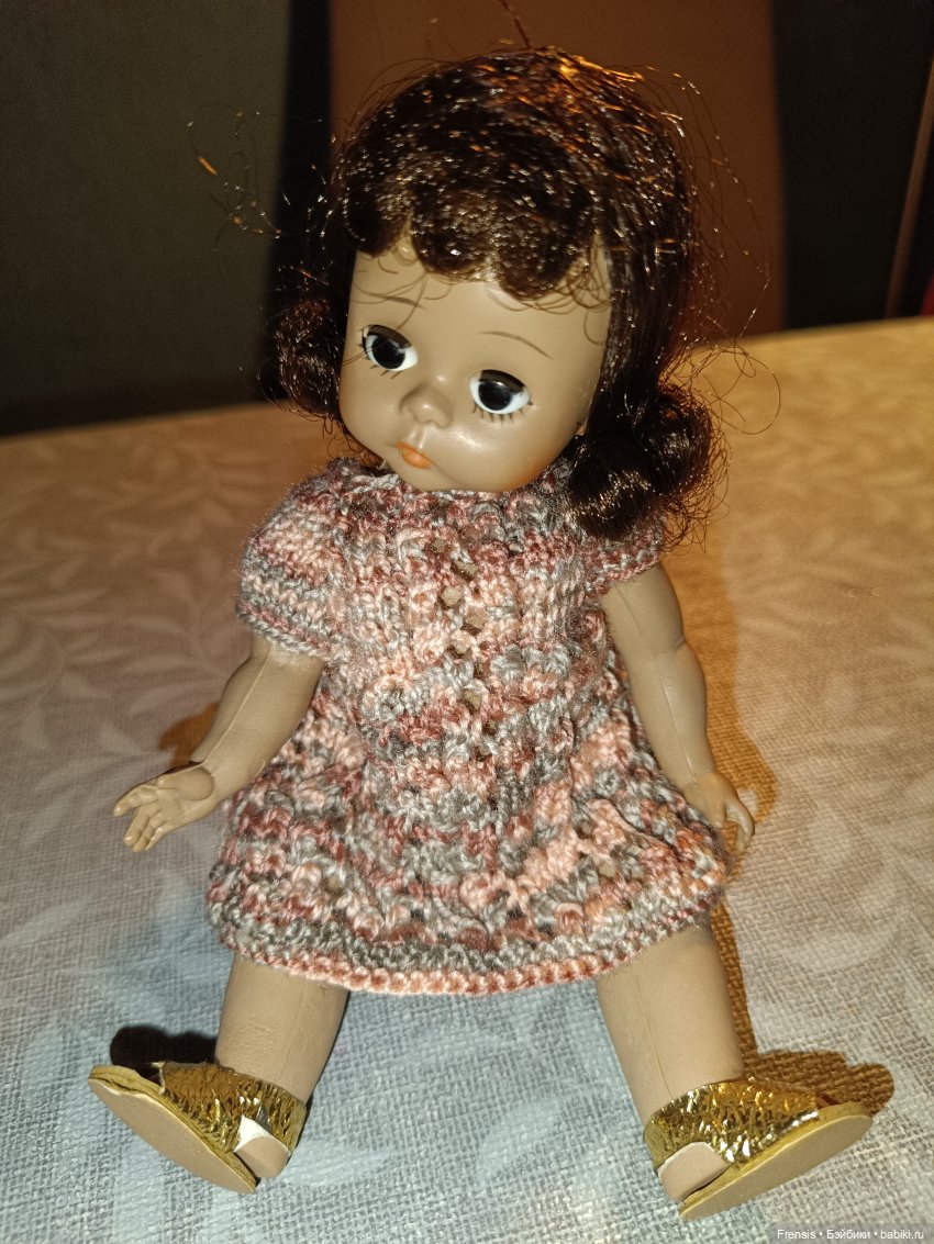 Добрый вечер всем! Мне посчастливилось стать владелицей куколки Madame Alexander, ростом 20 сантиметррв. Как я понимаю, винтажной. Жаль, только, что голенькой. Представляла её в платье с пышной, длинной юбочкой, какими они славятся!
