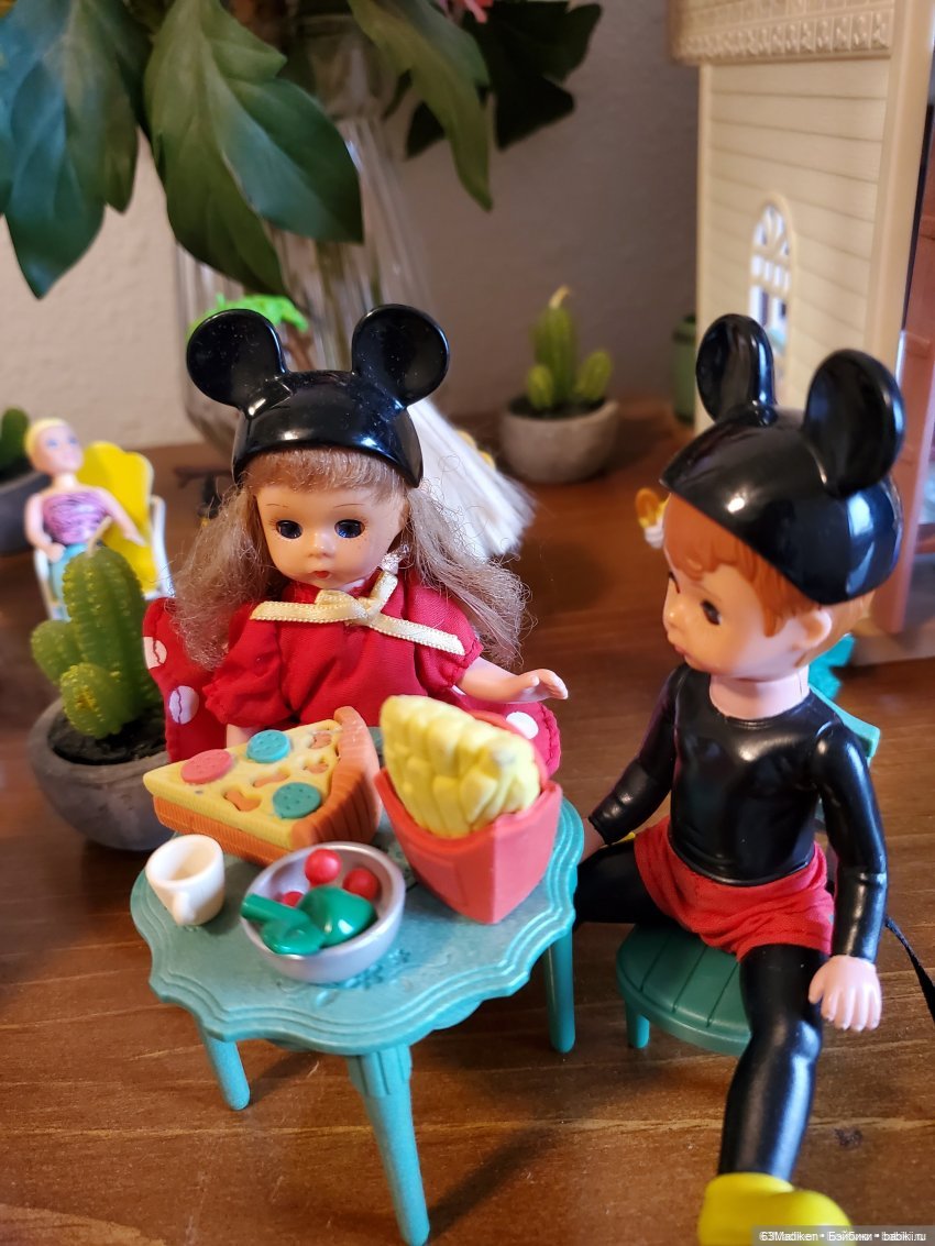 9) Микки и Мини Маус. Всего были сделаны 4 персонажа — две пары, светлые и тёмные. У меня живут трое, не хватает только тёмненькой девочки (Mickey Mouse Boy White Caucasian 2004г. №4; Minnie Mouse White Caucasian 2004г. №3; Mickey Mouse Black African 2004г. №4):
