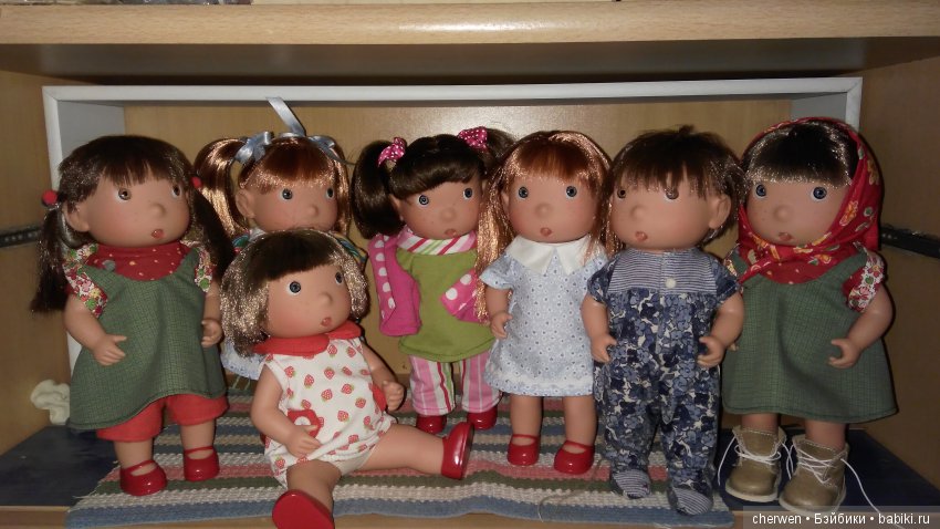 Очень позитивные куколки, всегда радуют взгляд. Мальчик и девочка (Маша и Саша), крайние справа, это дочкины. Остальные мои.