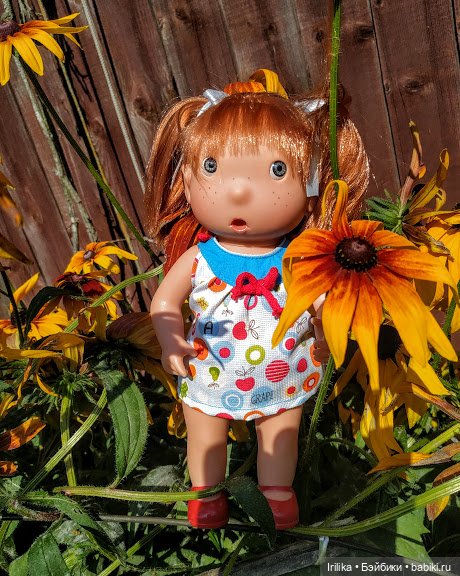 Она, выражаясь языком «матёрых» бейбикистов, такая «тискательная и вживую лучше, чем на фото»))). Удобный размер — не большая и не маленькая, не худышка и не толстячок. Платьице красивое, забавная мордашка, светлые волосики. Туфельки вот только не снимаются — нарисованы. И пахнет ванилькой (лежит пока, поветривается).