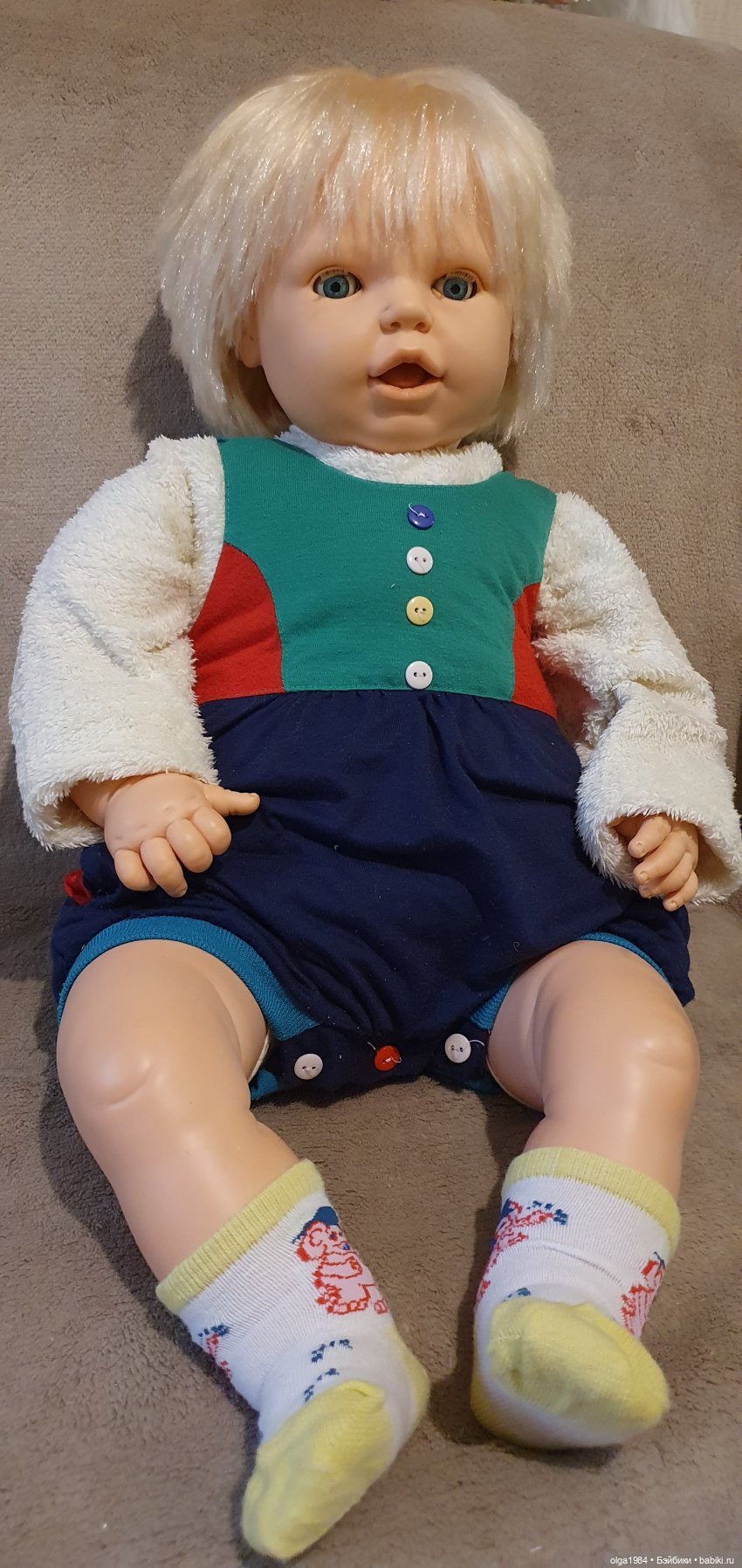 Доброго времени суток, уважаемые Бэйбики! Когда-то я не любила мягконабивных кукол, но сейчас спокойно к ним отношусь. В прошлом году даже захотела купить большую мягконабивную куклу. Присмотрела девочку. Но то денег не было, то всех кукол раскупили. В этот раз увидела, что снова в продаже и решила больше не откладывать, заказала. И правильно сделала, т.к. опять этой куклы в продаже нет. Есть пупсы без волос, тоже очень симпатичные. В названии было указано — «пупс Бобо».