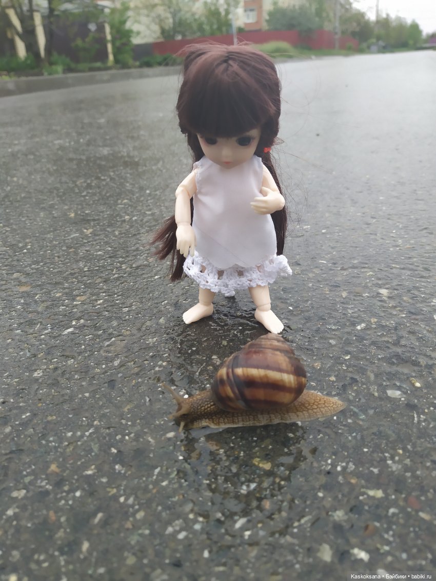 Улитка вставлена в фото:) Тени под ней нет. У меня в этом году что-то много таких улиток в саду.
