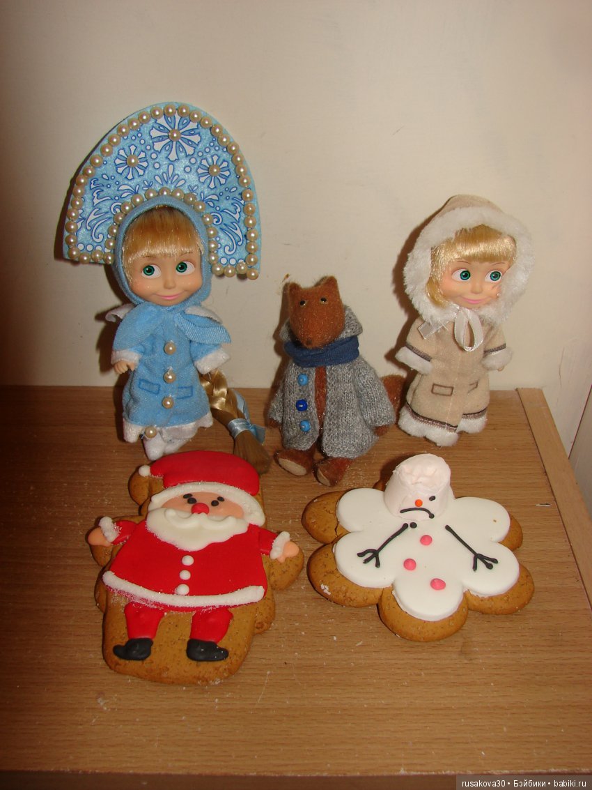Добрый вечер! Наконец-то я собралась с мыслями и нарядила к Новому Году мамину Машку а кармашке и сынишкину Дашку. Маша, разумеется, запросила костюм Снегурочки, как же иначе!