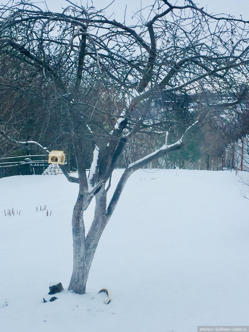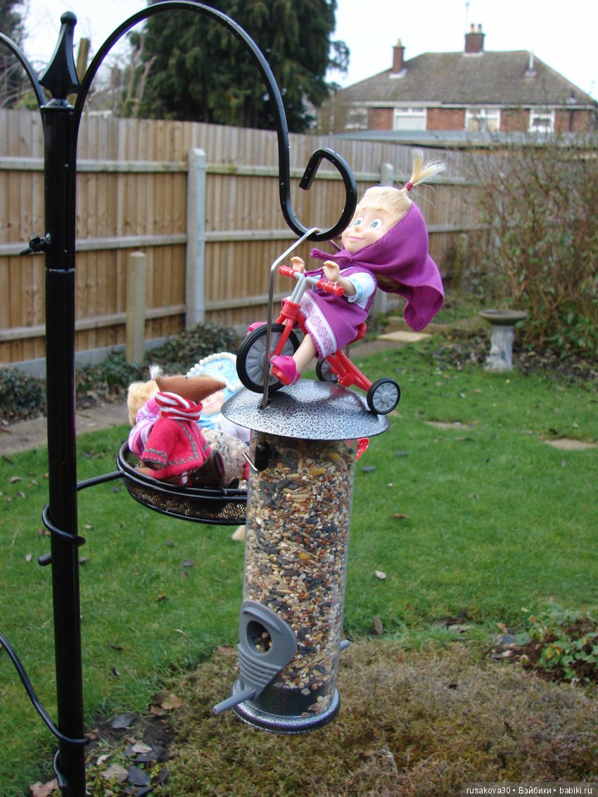 Муж решил купить и поставить кормушки для птичек. Машки высыпали в сад, посмотреть