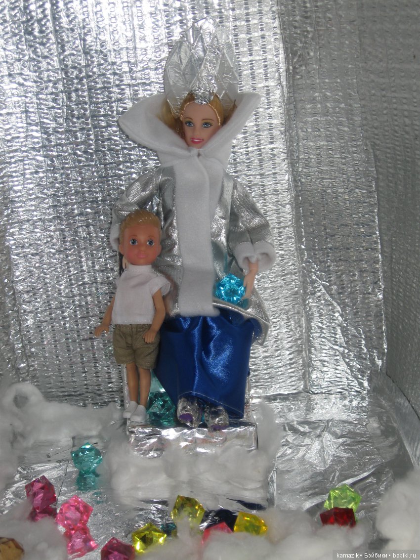 Я искала Ваше фото, Юля, надеялась узнать, но не узнала.Хороший образ у Вас получился.Что это за кристалы разброшены вокруг Кая и Снежной королевы?