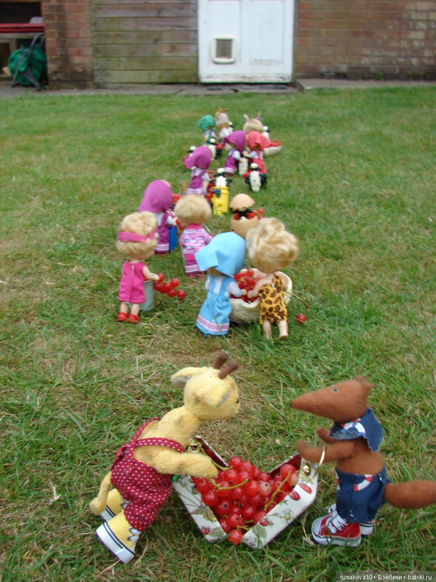 Это фото прошлых лет.Минушки собирают красную смородину.
