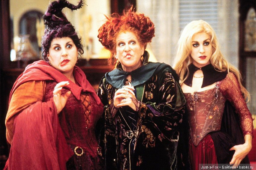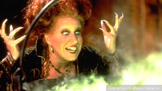 Вспомнила один из своих любимых фильмов детства, как раз на тему Хэллоуина — «Фокус-покус» 1993г. Про трех сестер-ведьм, в роли старшей Бетт Мидлер, ее героиня особенно харизматична)) Это скорее комедия, но все-равно довольно устрашающе))