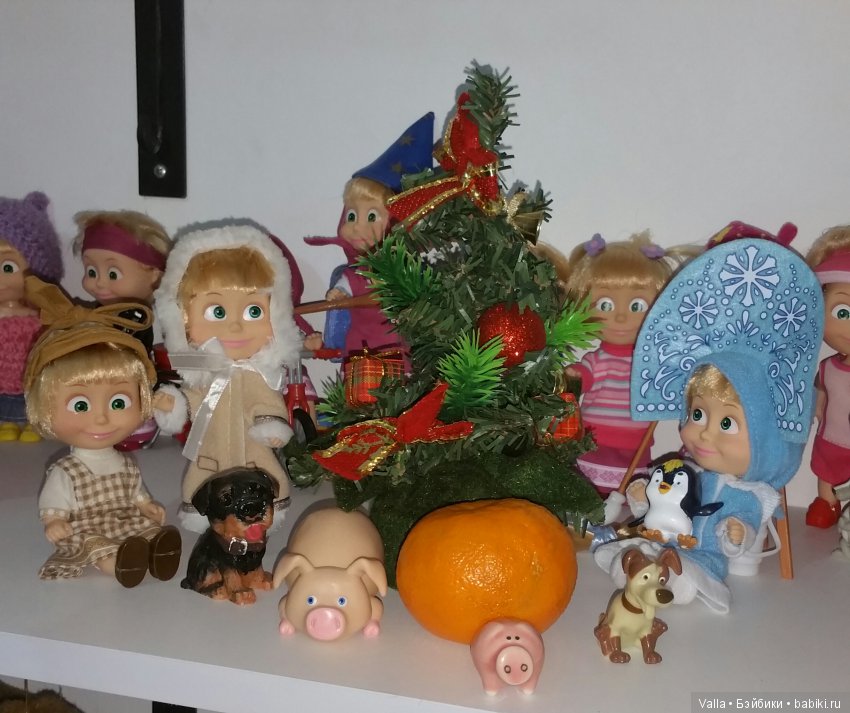 А ее сестра в костюме снегурочки верховодит на своей полке, а другая решила быть рыжей