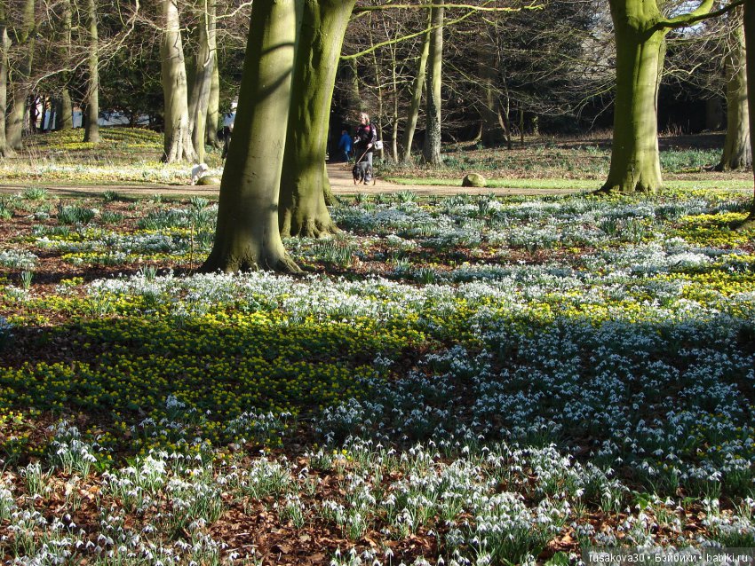 Поехали мы в Оксбру-холл ( Oxburgh Hall).Там как раз сейчас во всю цветут подснежники.