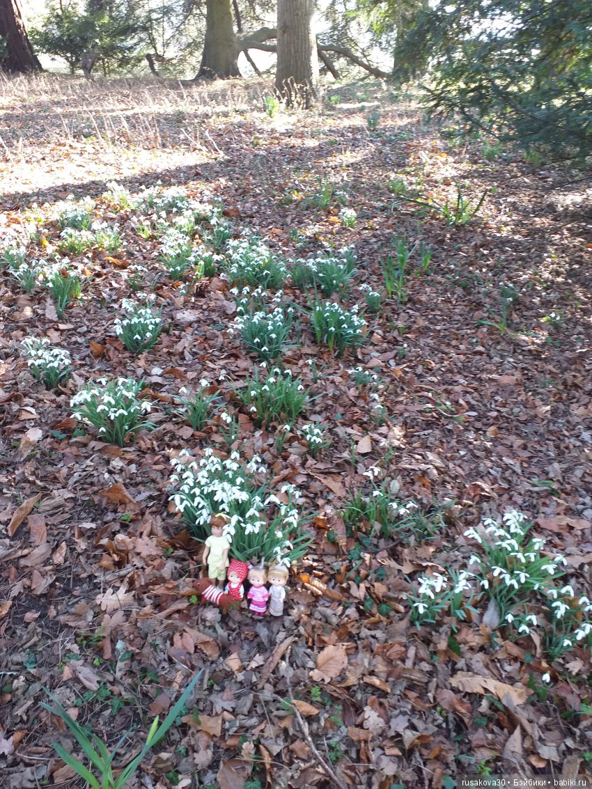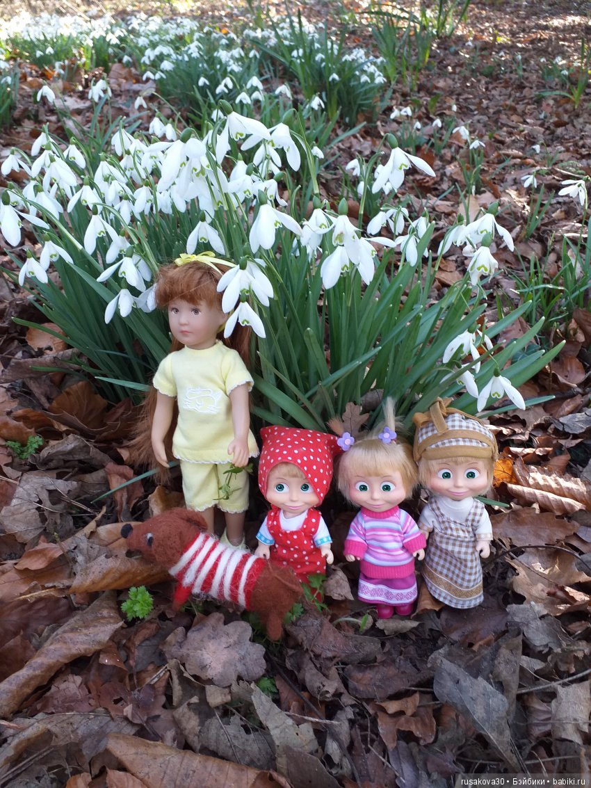 Машки, Финхен и собачка Туська весело бегали по парку, любовались подснежниками.